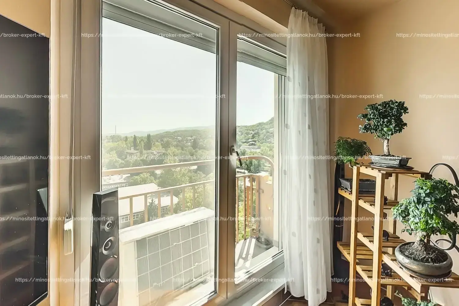 Világos, déli fekvésű lakás, panorámás kilátással a Budai-hegységre. A nap reggeltől késő délelőttig beragyogja a helyiségeket, így egész évben kellemes, természetes fényárban élhet.
