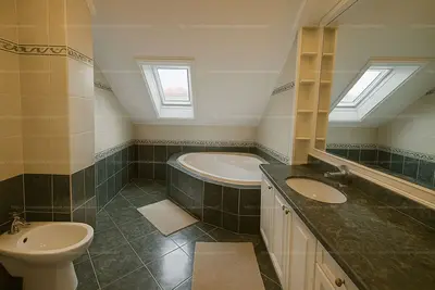Az EMELET négy, KÜLÖNNYÍLÓ, ERKÉLYES HÁLÓSZOBA, gardrób és fürdőszoba elosztásának köszönhetően nagyobb család részére is KÉNYELMES. A SZUTERÉN szint extrái: KÉTÁLLÁSOS GARÁZS ELEKTROMOS kapuval, gardrób rész, WELLNESS SZÓBA, MOZISZÓBA, emellett egy TELJESEN KÜLÖNÁLLÓ, SZOBÁBÓL ÉS FÜRDŐBŐL álló lakrész, mely ideális iroda, rendelő vagy saját lakás céljára is.