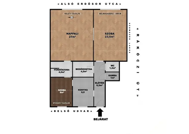 • 2 bejáratos (Rákóczi út - Alsó erdősor)