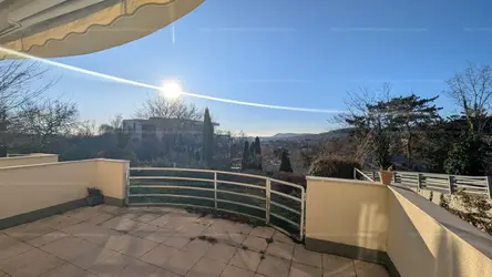 A nappaliból egy kb. 20 m²-es terasz nyílik, ahonnan közvetlenül ki lehet sétálni a kertbe. A teraszról és a nappaliból is panorámás, messzire ellátó kilátás nyílik, ami igazán különlegessé teszi az ingatlant.