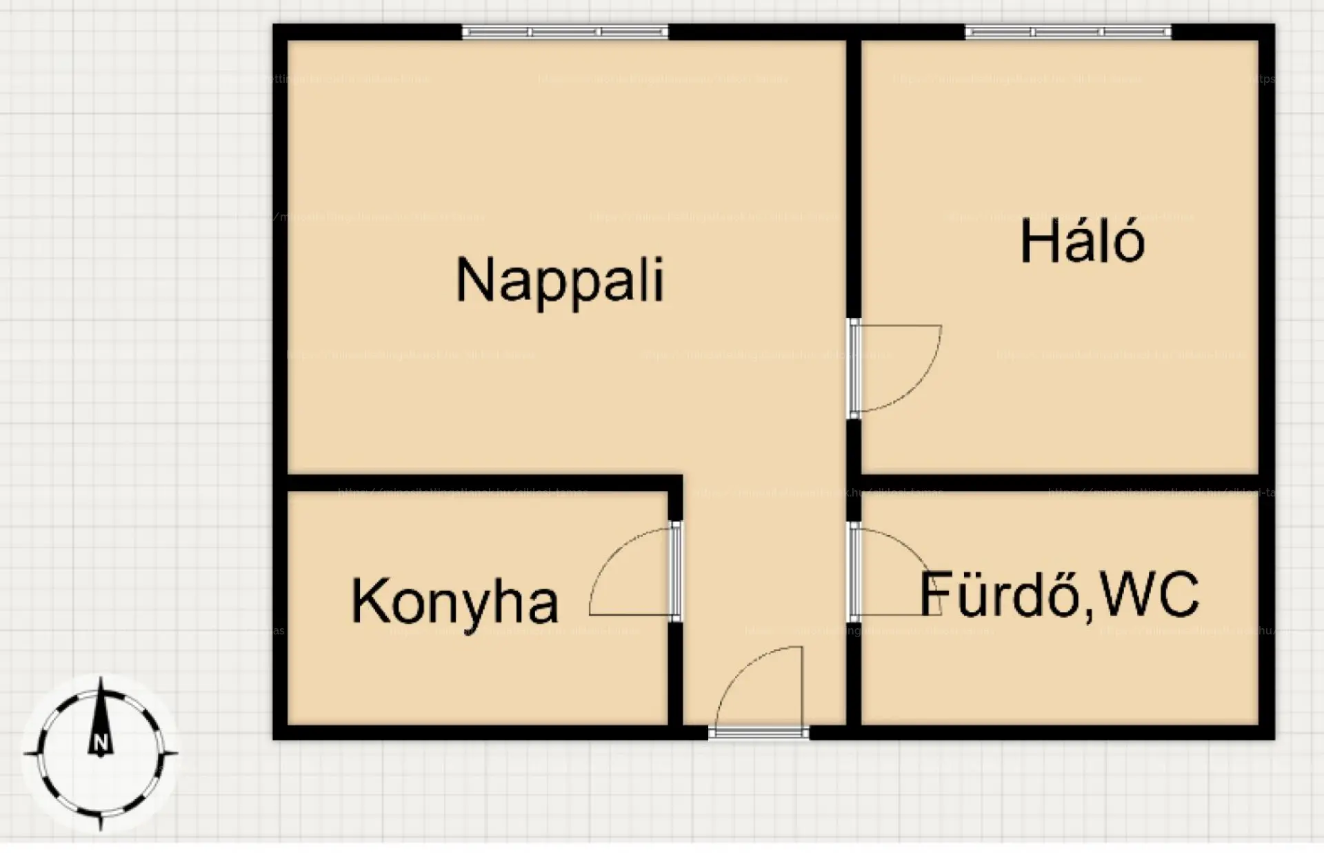 👉 42 m²-es, jól átgondolt elrendezés: nappali + 1 külön hálószoba