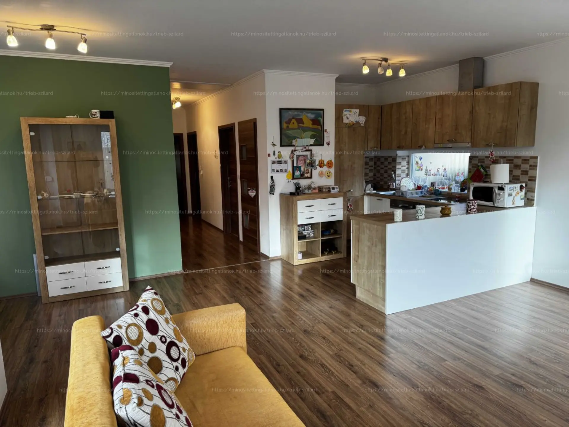 Belso elrendezés: JÓ ELOSZTÁS AMERIKAI KONYHÁS NAPPALI FELETT, 3 SZOBA, ÉS SPEJZ. A szobák KÖZLEKEDŐRŐL, ami ÖNÁLLÓ közelíthetők meg. Kádas–zuhanykabinos fürdő WC-vel, továbbá VENDÉG WC amely külön helyezkedik el szolgálja a mindennapokat – CSALÁDBARÁT, FUNKCIONÁLIS kialakítás.