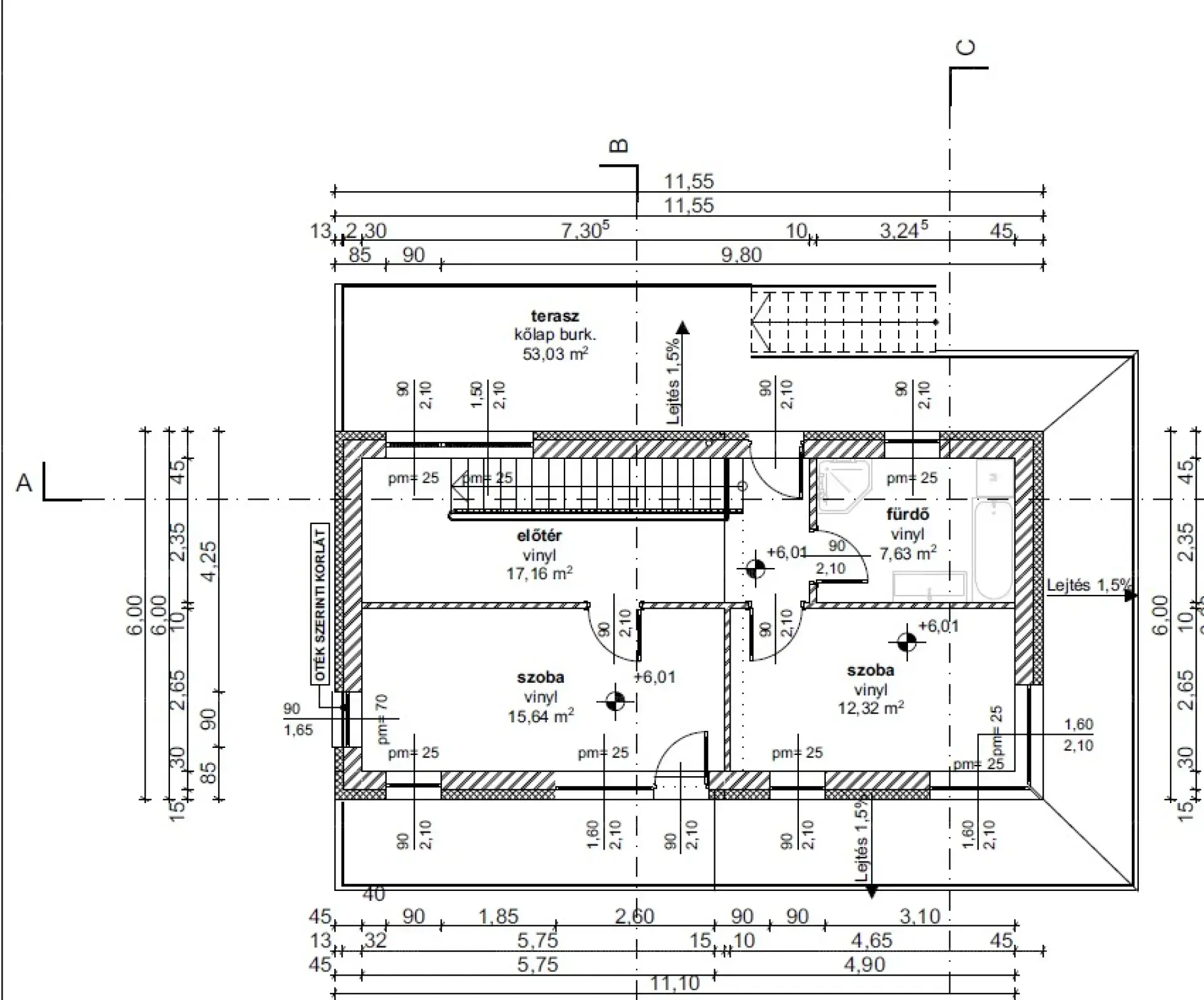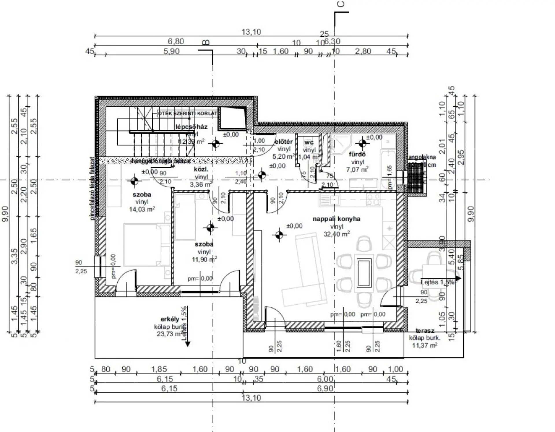 Beépíthetőség: 15% föld felett, 25% föld alatt