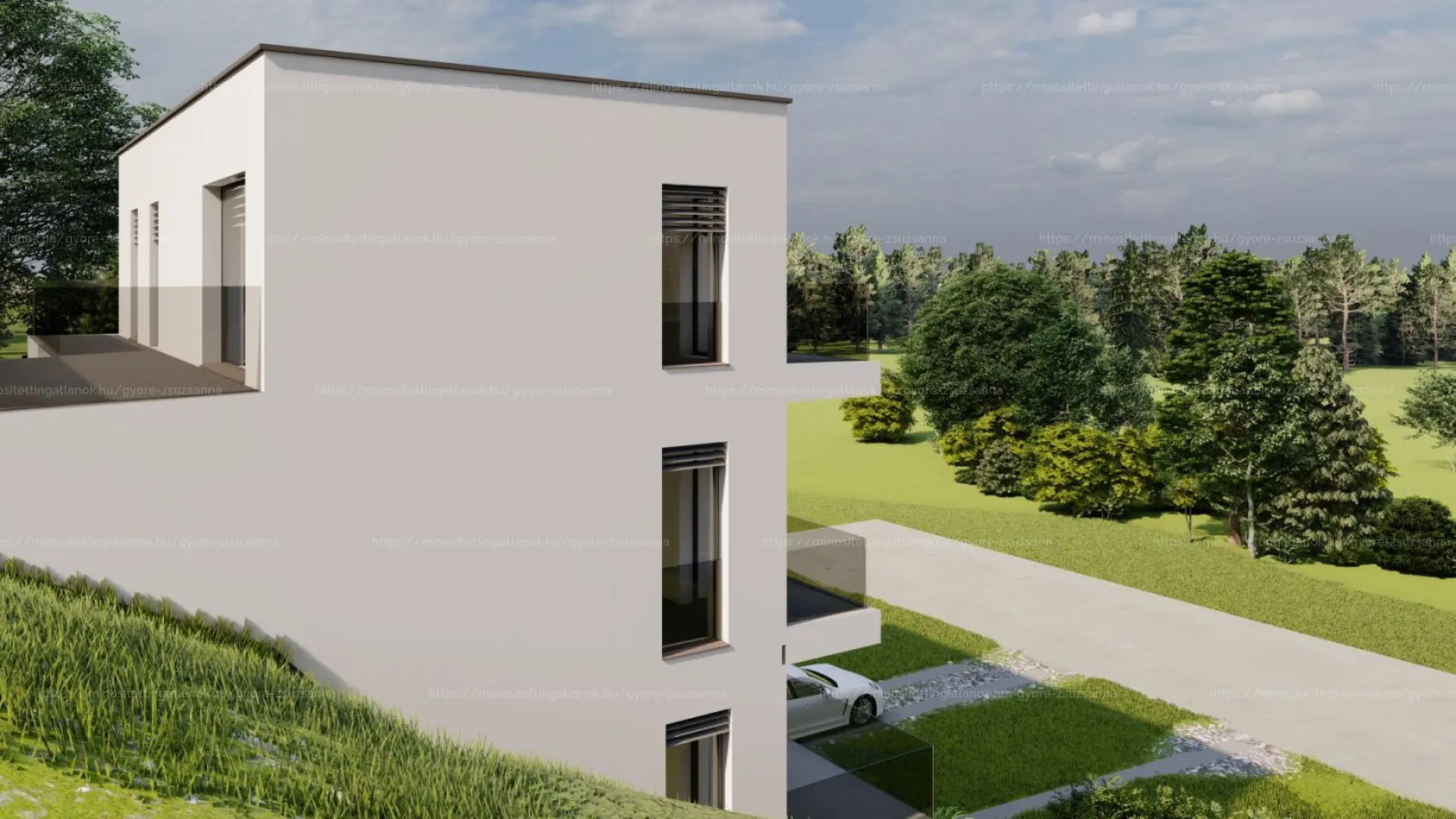 Érvényes építési engedély: 420 m²-es, kétlakásos, több szintes társasházra