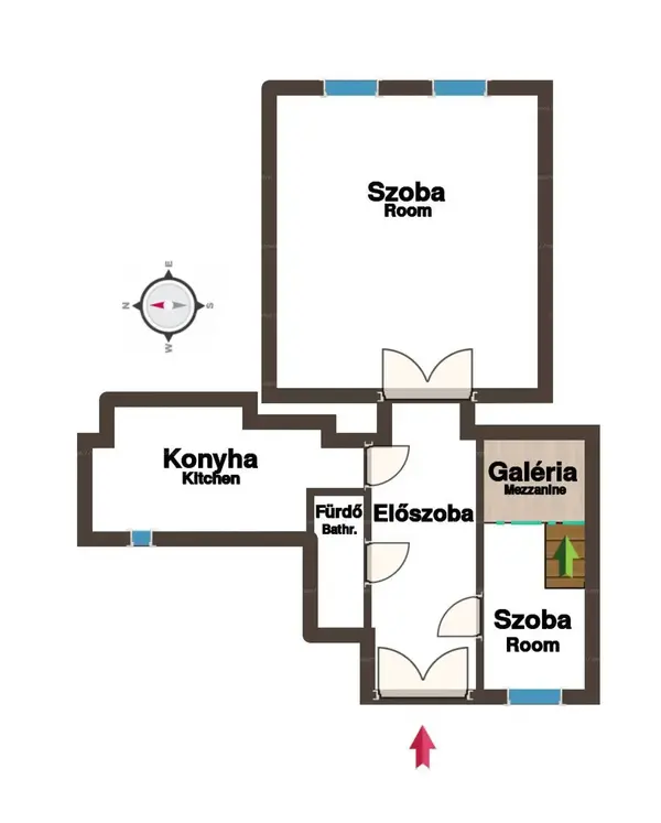 Szobák száma: 2 (egy tágas nappali + egy kisebb, galériázott háló)