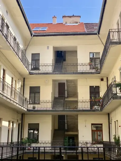 A társasház rendezett, rendszeresen karbantartott, kellemes hangulatú belső udvarral és klasszikus, körfolyosós elrendezéssel rendelkezik. A lakás egy felújított, nagy belmagasságú (3,8 m) ingatlan, amely 47 négyzetméteres alapterülete mellett további kb. 10 négyzetméternyi hasznos galériatérrel is rendelkezik, így a térérzet és a funkcionalitás egyszerre érvényesül.