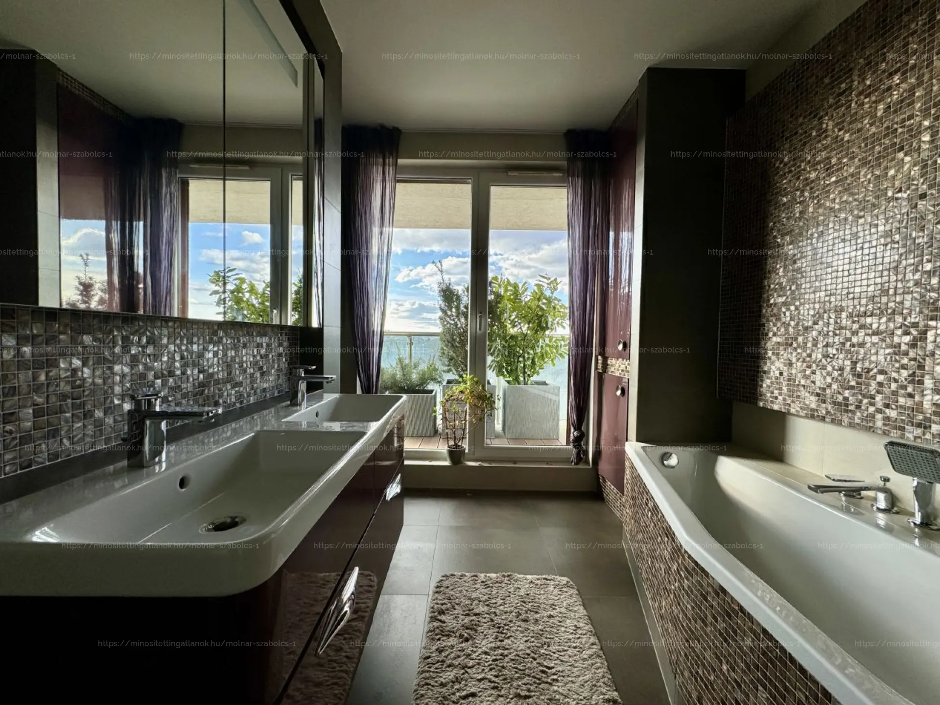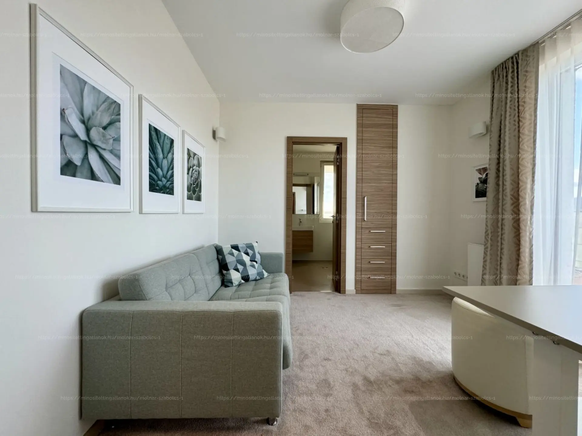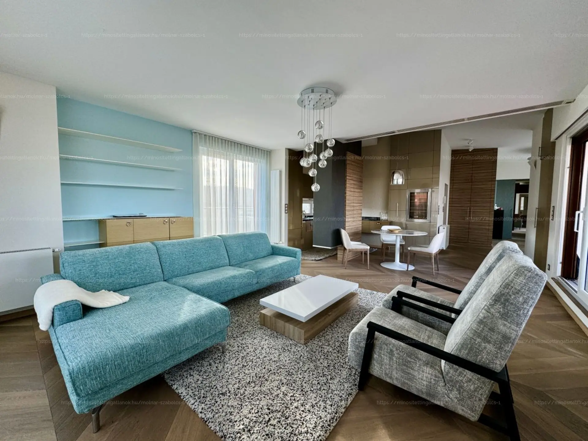 A lakás teljesen felszerelt, kiváló minőségű gépekkel és teljes, egyedi gyártású bútorzattal eladó.