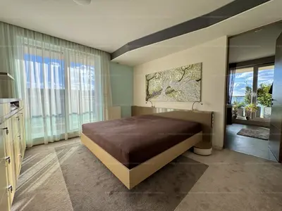 A lakás teljesen felszerelt, kiváló minőségű gépekkel és teljes, egyedi gyártású bútorzattal eladó.