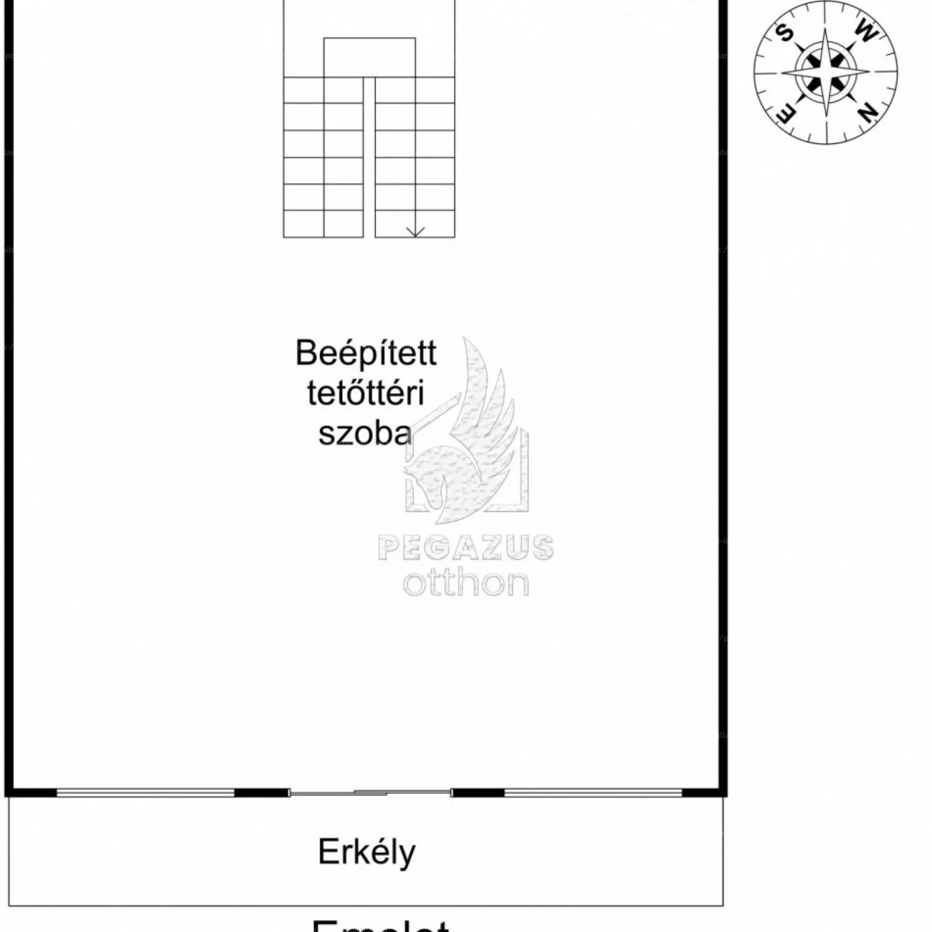 Felső szint (beépített tetőtér): Egy tágas, nagy tér, melyhez erkély is tartozik, tökéletes kilátással a környező zöldövezetre.