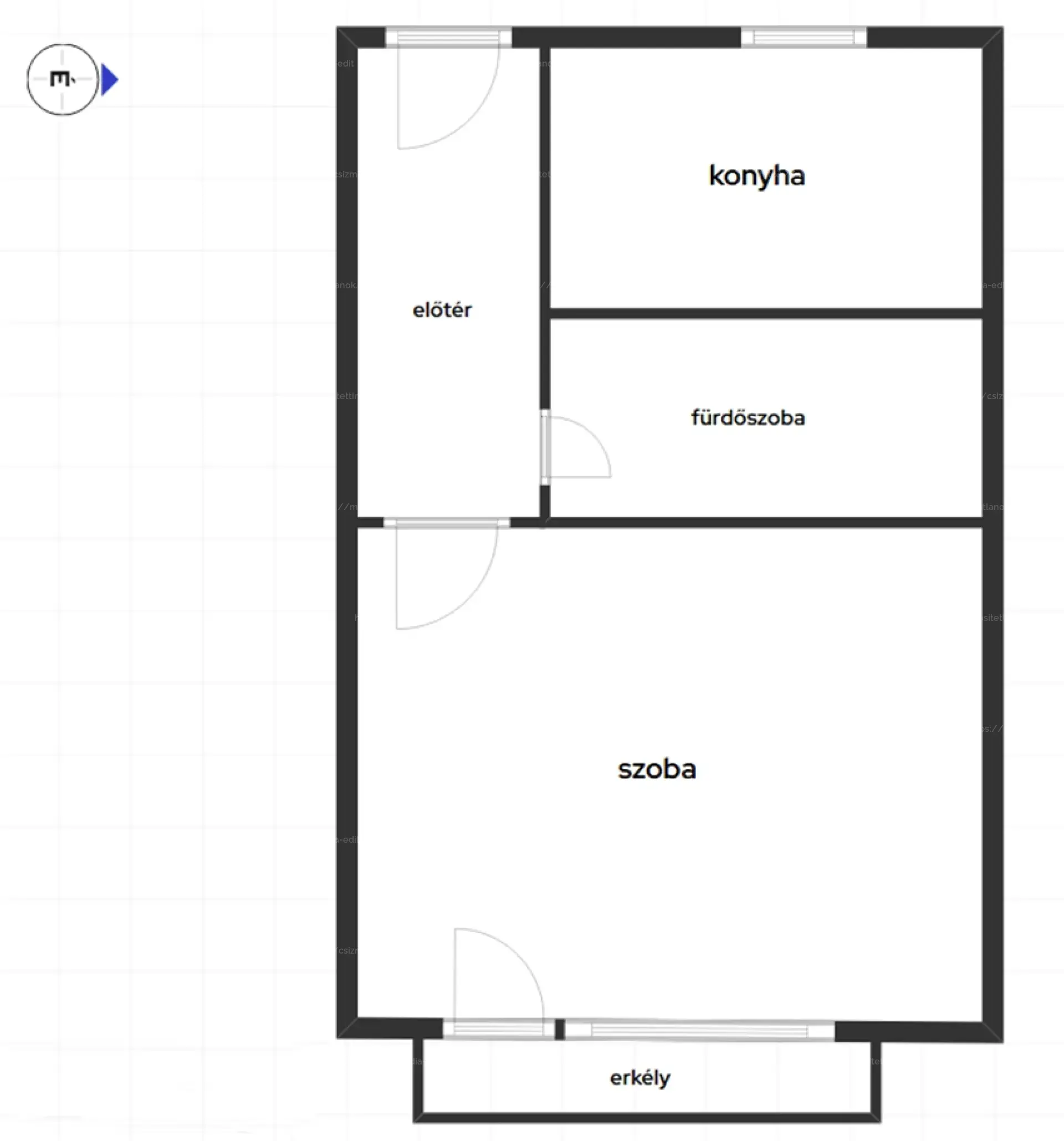 A lakás 36 m²-es és tartozik hozzá egy 3 m²-es erkély is.