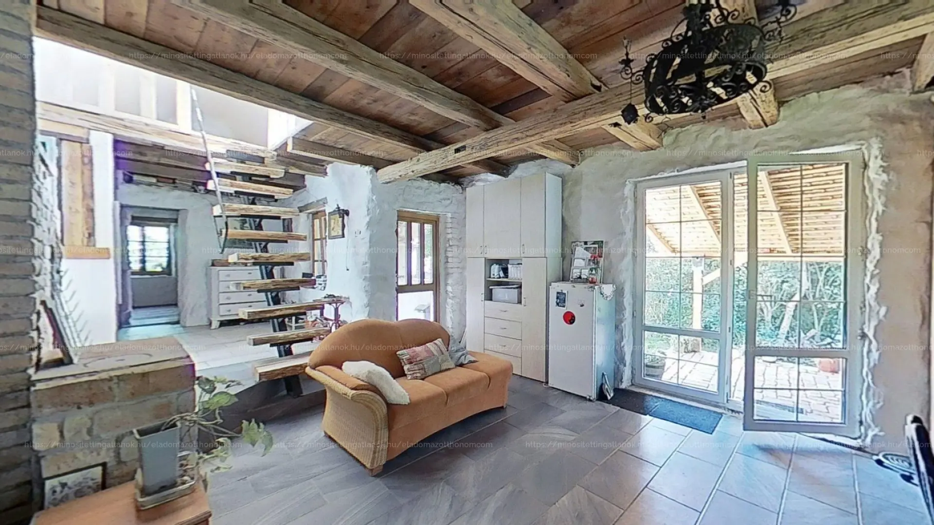 Taliándörögdön, a Művészetek Völgyének minden évben helyszínt adó településen ELADÓ különleges és egyedi karakterű, 110 m2-es, földszint plusz tetőtér-beépítéses, D-i tájolású bazaltkőház az igazán ritkaságok kedvelőinek.