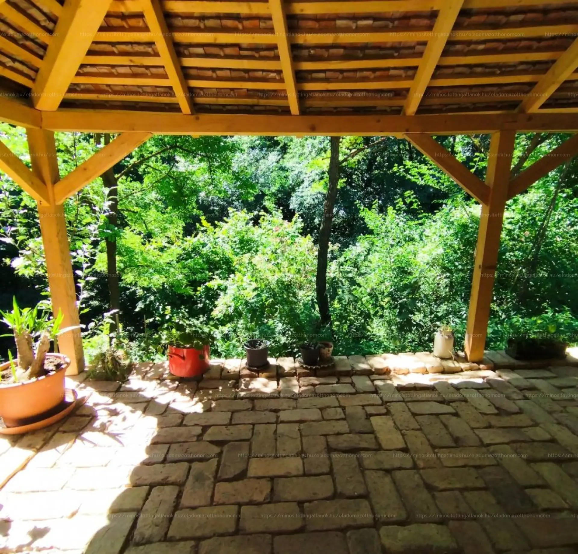 Valamint csatlakozik hozzá még egy 60 m2-es fa terasz a ház és patak közötti szurdok közepén, melyre akár fürdődézsa vagy jurta is tervezhető, vagy egy pergolás terasz.