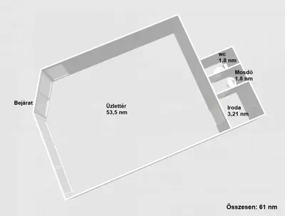 Az eladótérhez saját iroda, mosdó, és wc tartozik, továbbá minden irányból parkolási lehetőség biztosított, ami kereskedelmi és szolgáltatási tevékenységekhez elengedhetetlen.