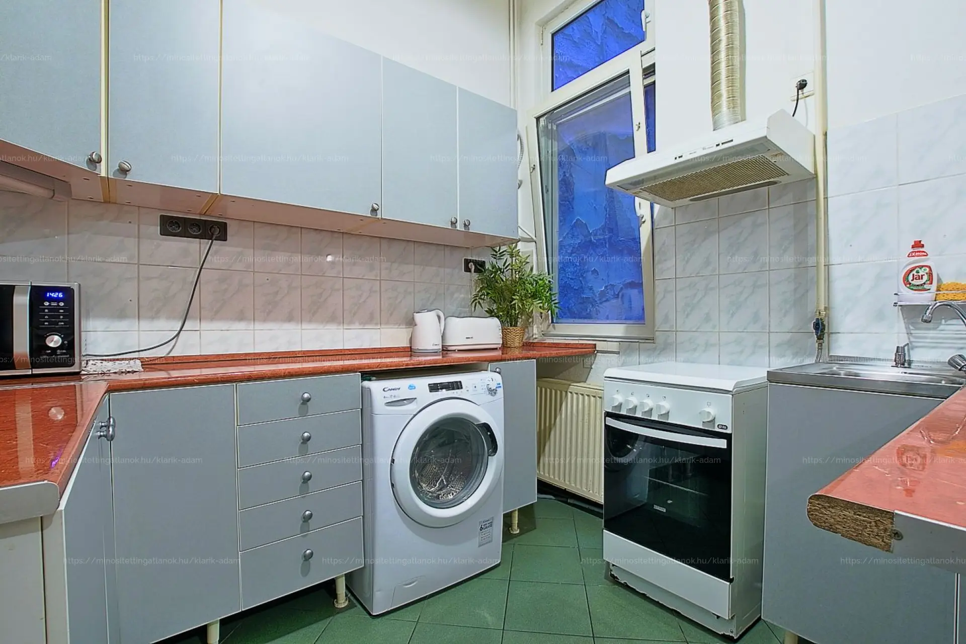 A lakás emeleti, utcai nézetű, így világos és kellemes hangulatú.