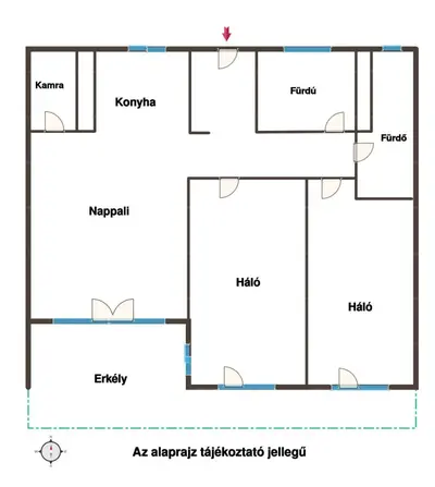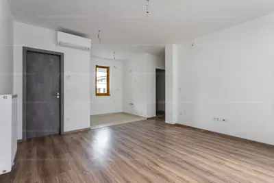A bejáratnál biztonsági ajtón jutunk be a tágas előszobába, ahol kényelmesen elférnek az előszobabútorok, cipők, kabátok. Innen egy közlekedőn át vezet az út a nappaliba, illetve a hálószobákhoz. A nappali nagy üvegfelülettel nyílik a terasz felé, fa nyílászárókkal. A nappalihoz ablakos amerikai konyha tartozik, így a konyha is kap természetes fényt. A konyha mellett külön háztartási helyiség/tároló kapott helyet.