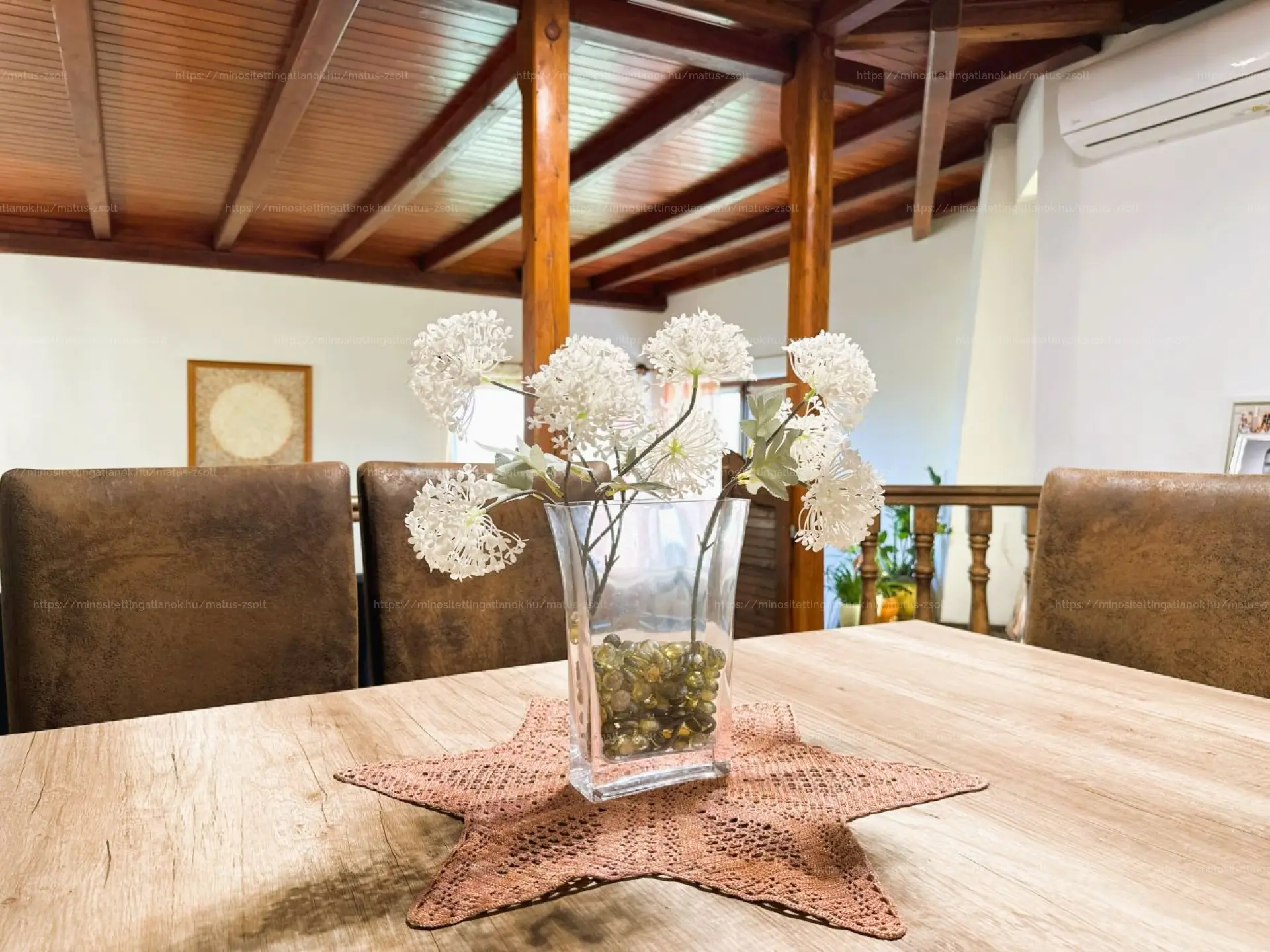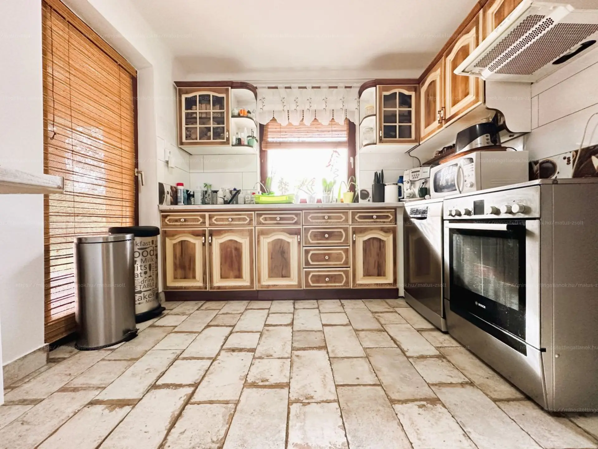Békés vármegyében, Sarkad város legszebb részén közvetlen tóparti ingatlant kínálok eladásra. Az 1990-ben épült, 160 m2 alapterületű dupla komfortos, tetőtér beépítéses, tégla falazatú, hőszigetelt családi ház lakó-pihenő övezetben, a festői Éden-tavak szomszédságában helyezkedik el. Az ingatlan tetőtéri részében 3 szoba, fürdőszoba, külön WC, folyosó, mosókonyha és egy gardróbszoba; a földszinti részen 1 szoba, fürdőszoba, külön WC, kazánház, konyha, nappali + étkező továbbá előszoba található. A ház részét képezi még egy hatalmas, az ingatlant körülölelő terasz, 17 m2-es pince, valamint egy 32 m2-es garázs + WC (ami régebben üzlethelyiségként működött). Az 1885 m2 alapterületű körbekerített telekterületen található még kettő garázs továbbá egy kerti tárolóhelyiség. A ház tágas, világos, többtagú család részére nyújt kényelmes otthont. Felszereltsége a mai modern kornak megfelelő, az otthon melegét gáz-cirkó rendszer padlófűtéses hőleadással továbbá hangulatos kandalló, hűtéséről 4 db légkondicionáló berendezés gondoskodik. A családi ház az évek során több felújításon esett át, amely eredményeként még szebb és komfortosabb lett. Villamos energia ellátását 1 éve telepített napelemrendszer segíti. Az ingatlan összközműves, per,- teher,- és igénymentes.