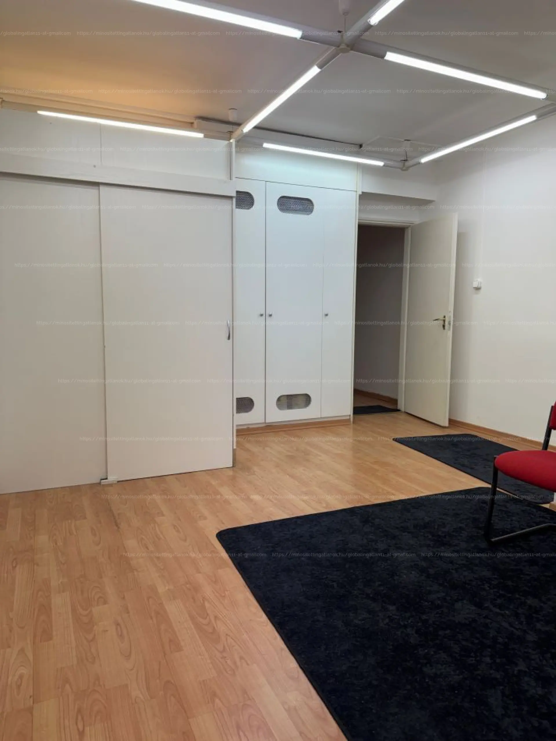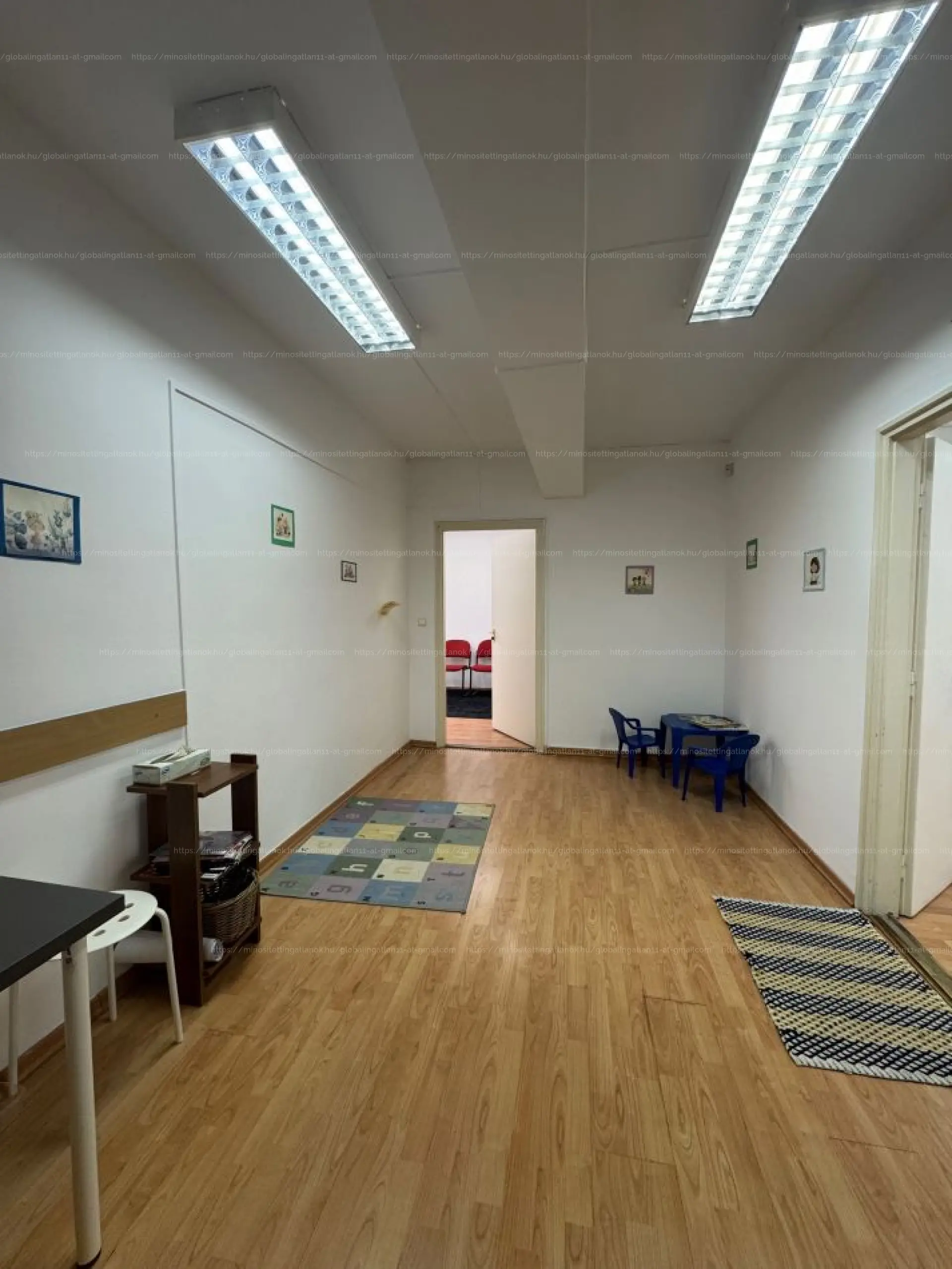 A szobák laminált parkettával burkoltak, a falak festettek.