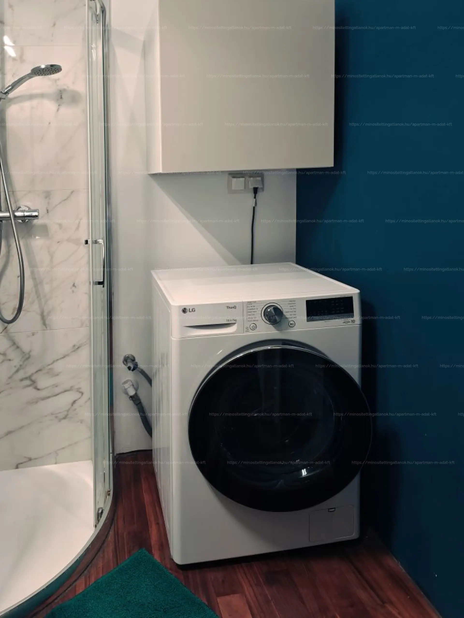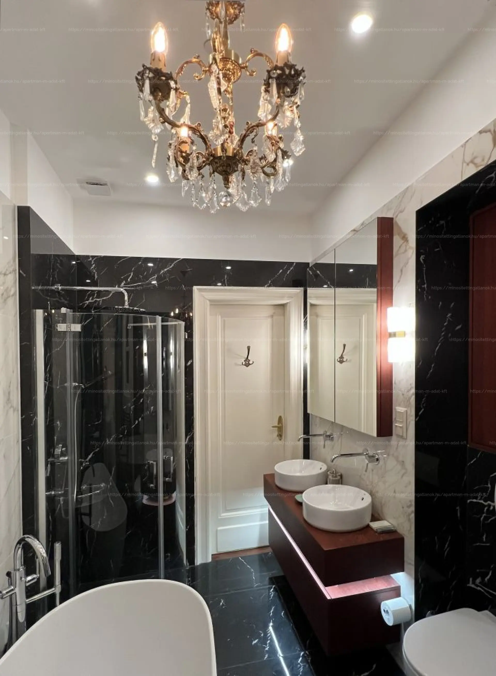 • Spa Bathroom: Elegant bathroom with natural stone tiles, bathtub, and separate shower. Separate utility room (with shower and washer-dryer combo).