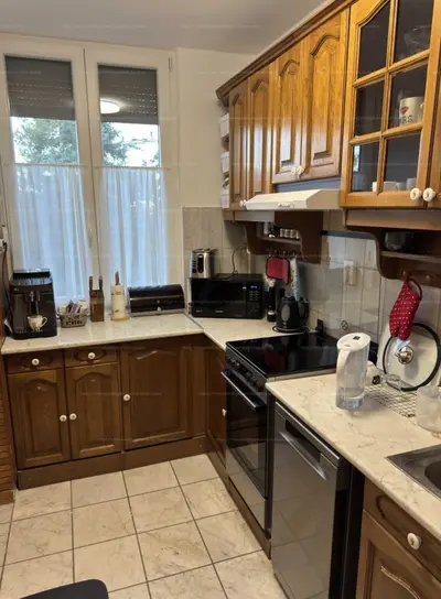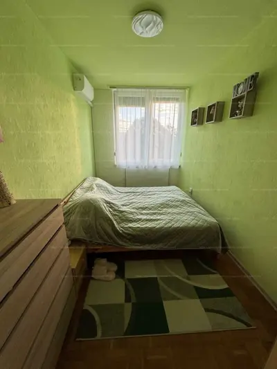 A környezet csendes zöld övezet, jó ellátottsággal: közvetlen közelben óvoda, üzlet, iskola és buszmegálló van. Hátsó részen játszótér és focipálya. Közös költség: 6 000 Ft.