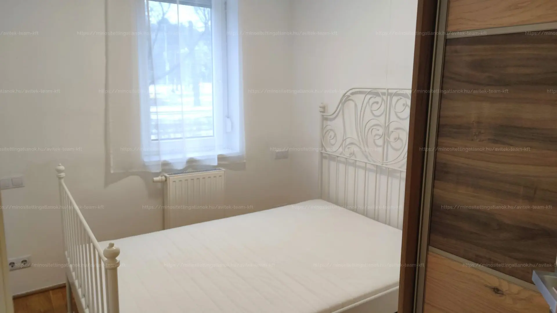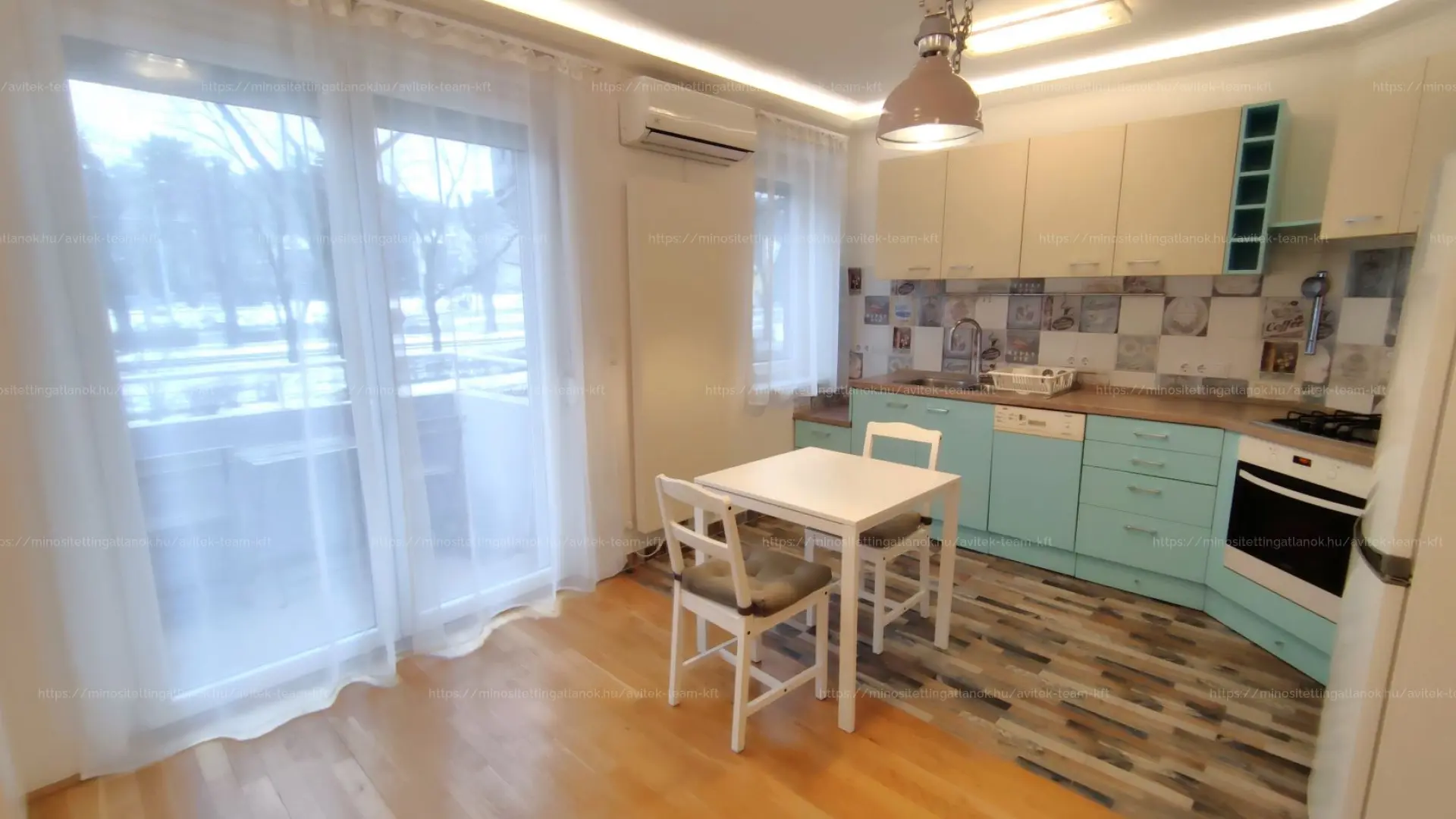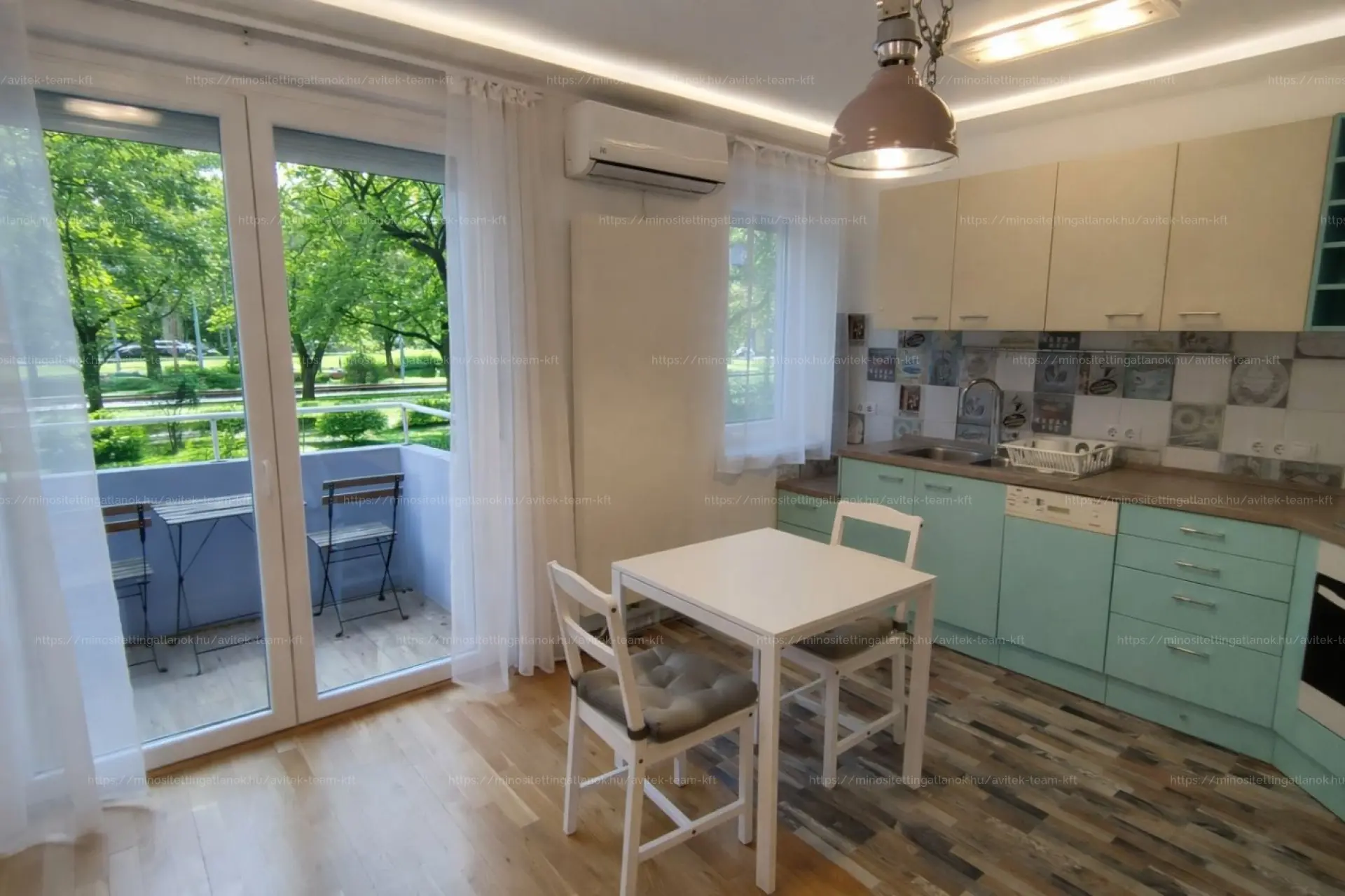 A lakás 2018-ban teljes felújításon esett át. Az amerikai konyhás nappali hatalmas ablakain árad be a napfény, erkélyéről szép kilátás nyílik a zöld környezetre. Az új műanyag ablakok redőnnyel és szúnyoghálóval felszereltek. A hálószobában franciaágy és beépített szekrény használható.