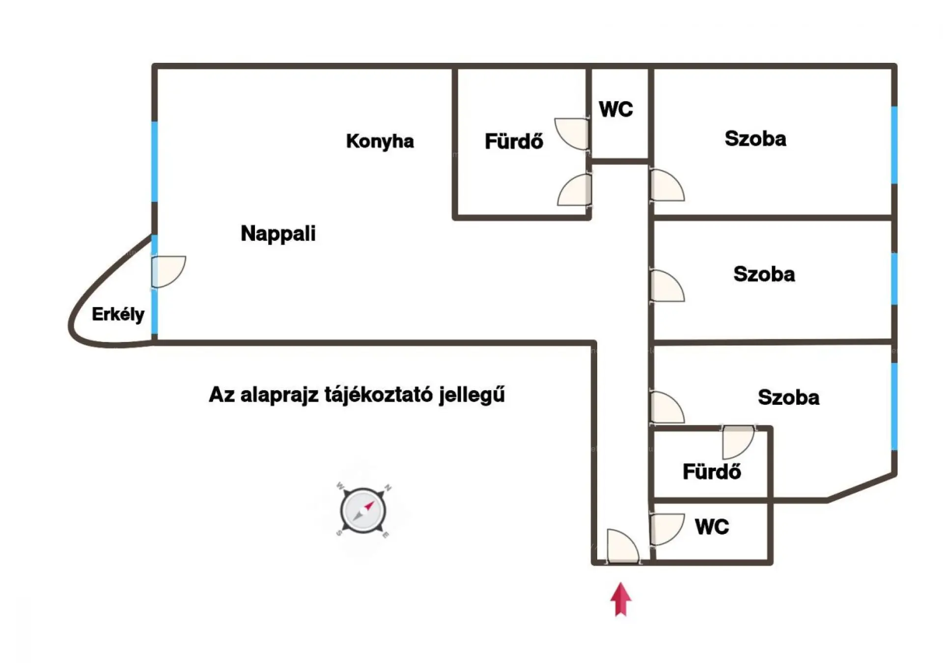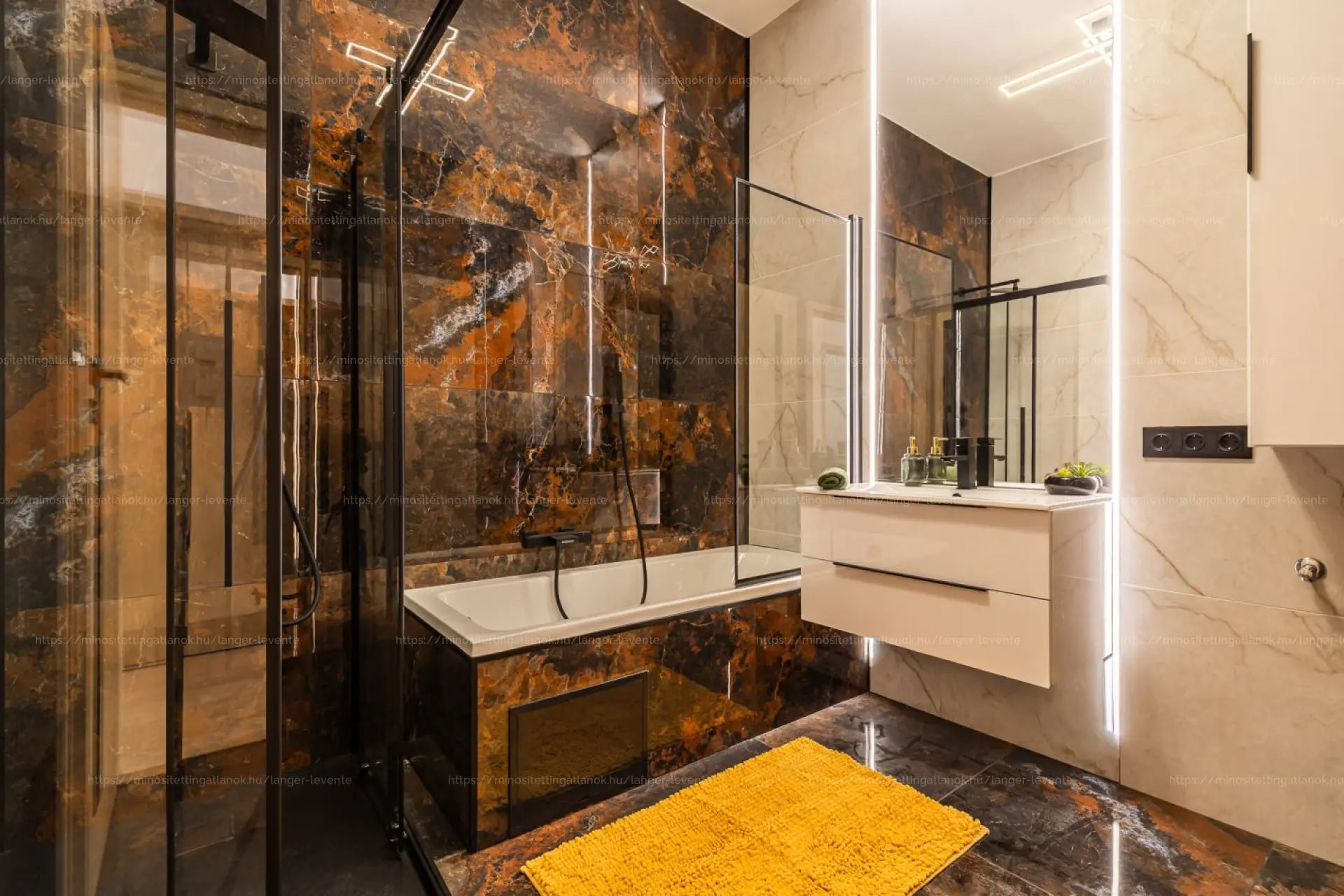 2 fürdőszoba (egyik kádas és zuhanyzós, WC-vel; másik zuhanyzós, WC-vel)
