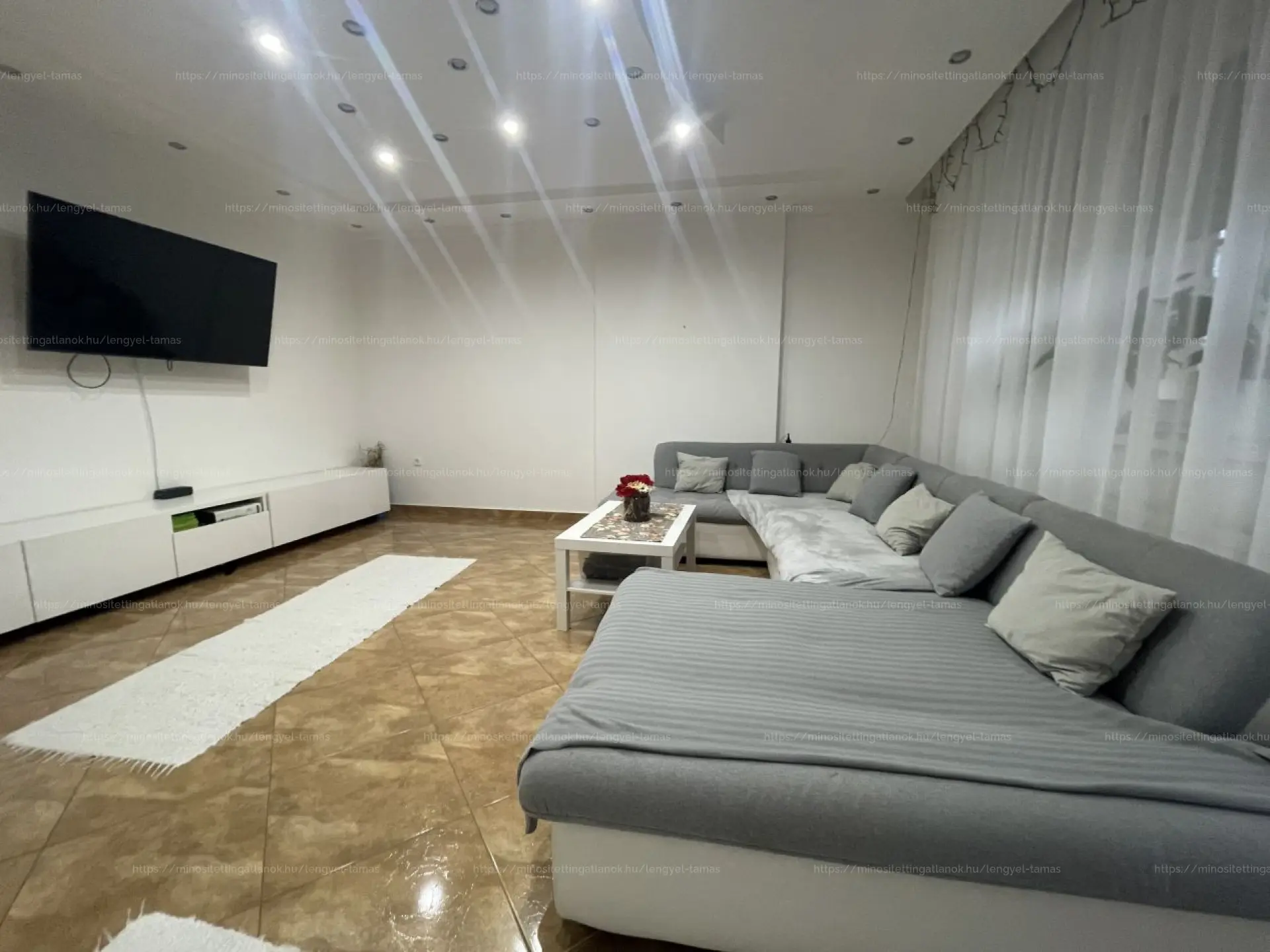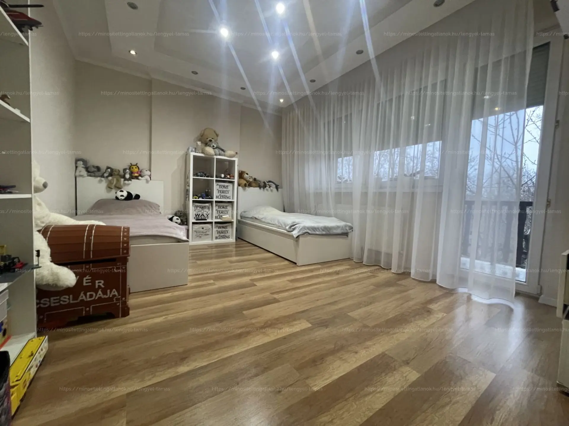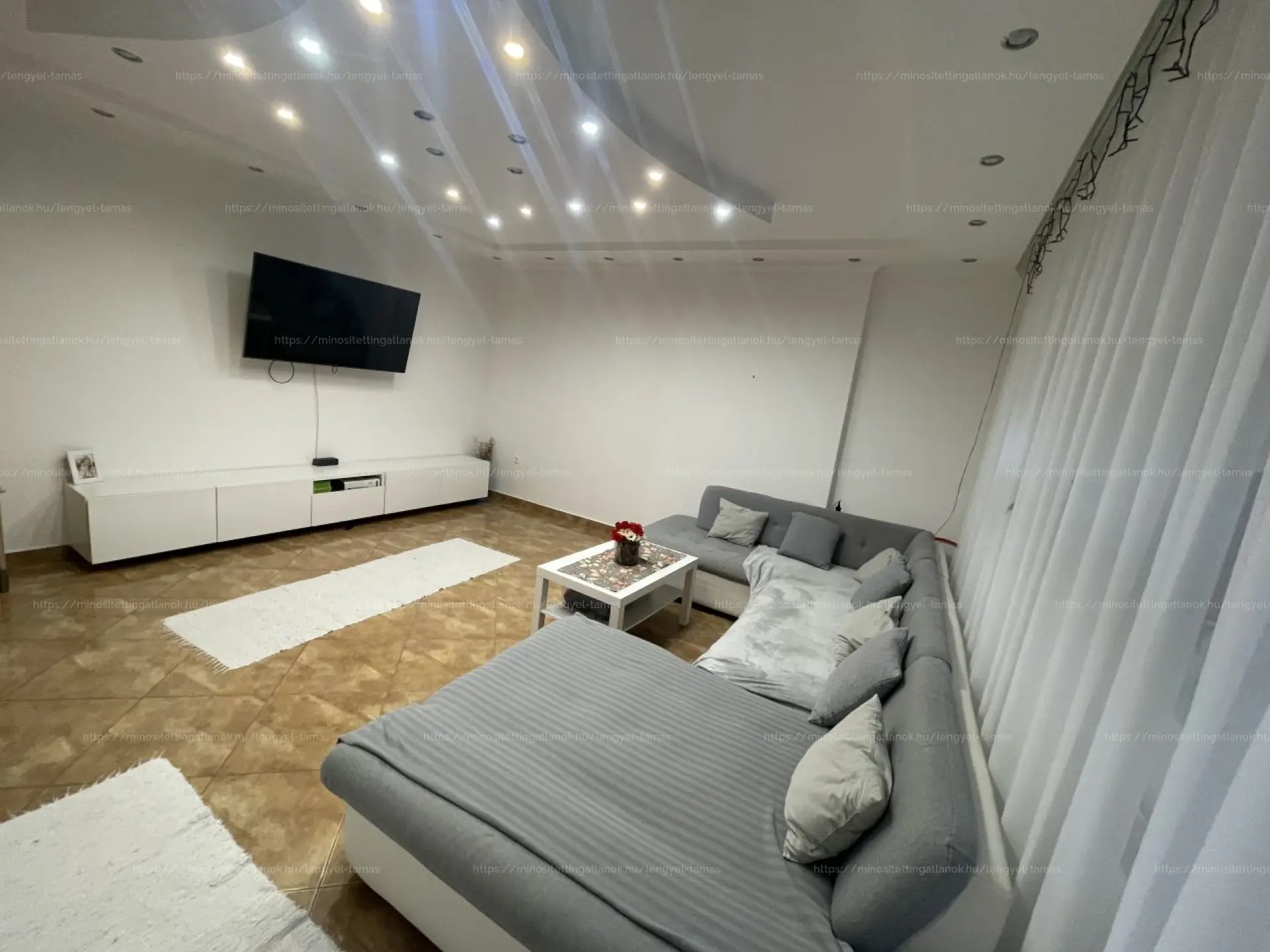 Az épület B30-as téglából épült, a homlokzati hőszigetelés változó, 10 és 15 cm-es. A hagyományos értelemben vett lakótér mérete 150 nm, nappali +3 szobával, két fürdőszobával, külön ec-vel, étkezővel, háztartási helyiséggel. A lakótér 2 szintje teljes belvilággal rendelkezik. Ehhez kapcsolódnak a 7,5 nm-es loggiák! A szuterén szinten kamra, egy nagyobb méretű 35 nm körüli garázs és egy jelenleg kondiszobaként funkcionáló fűthető helyiség kapott helyet!