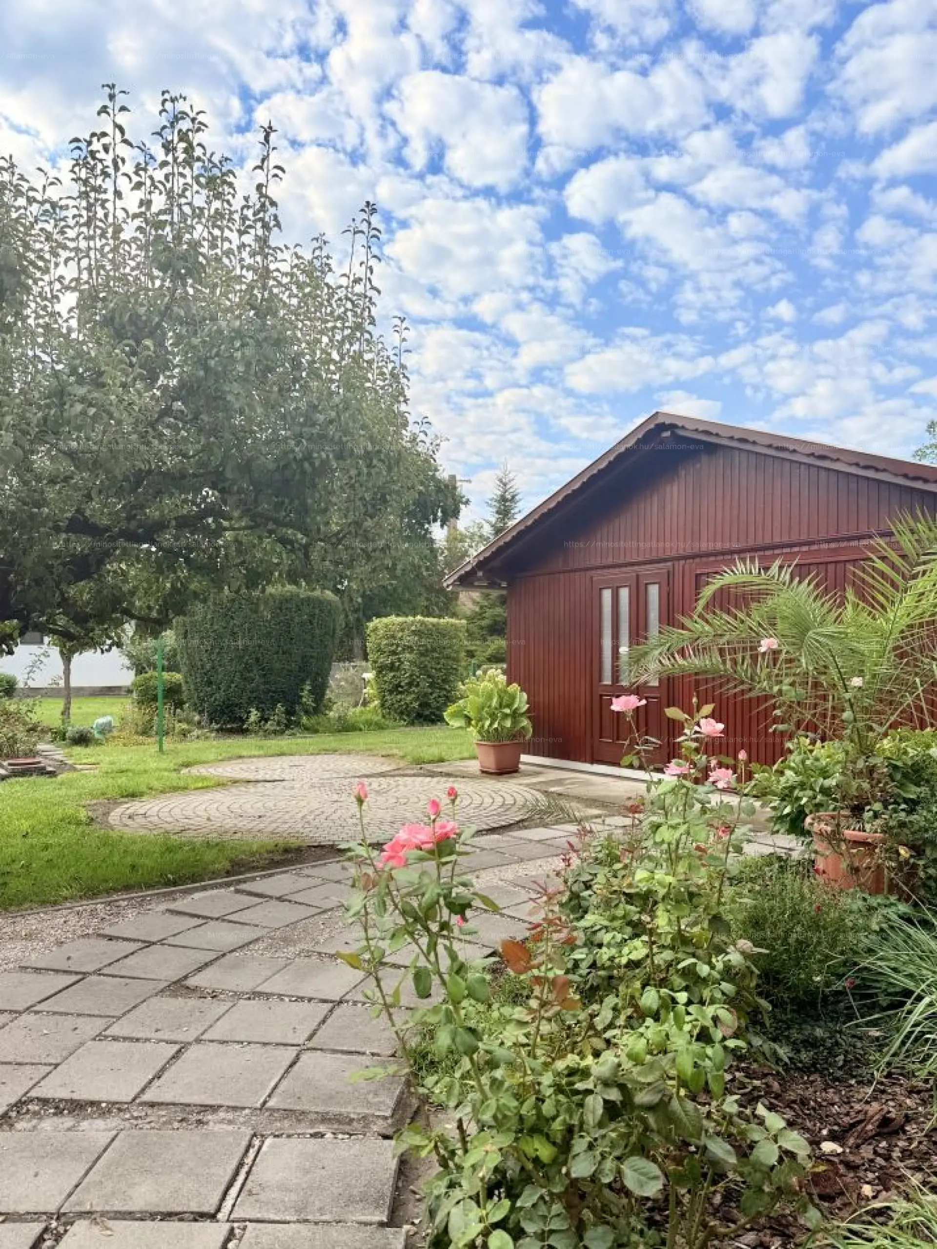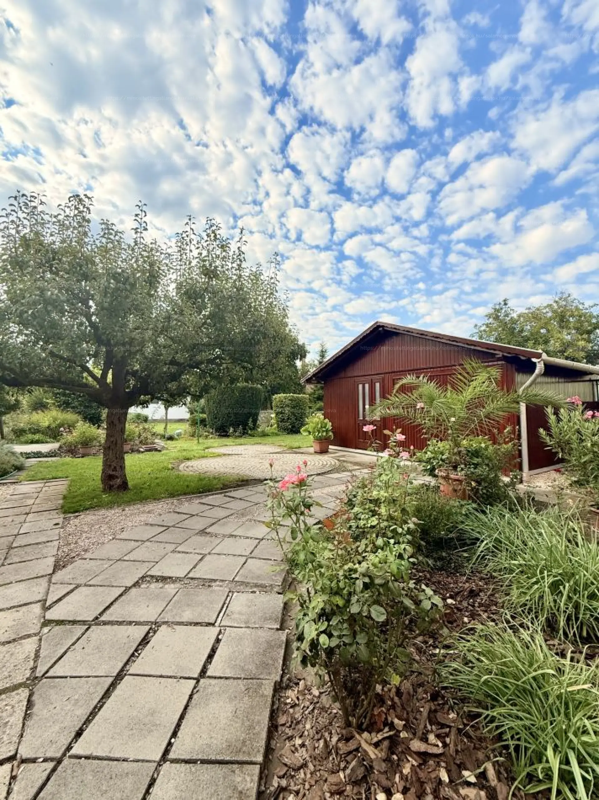 A hatalmas, parkosított udvarban könnyűszerkezetes garázs található, mellette tágas tárolóhelyiséggel. A telek mérete lehetővé teszi további bővítést, melléképület kialakítását vagy akár egy másik lakóépület építését is.