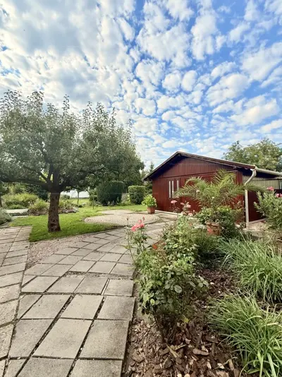 A kert ideális pihenésre családi összejövetelekre, kerti partikra, és akár hobbiállatok tartására is.