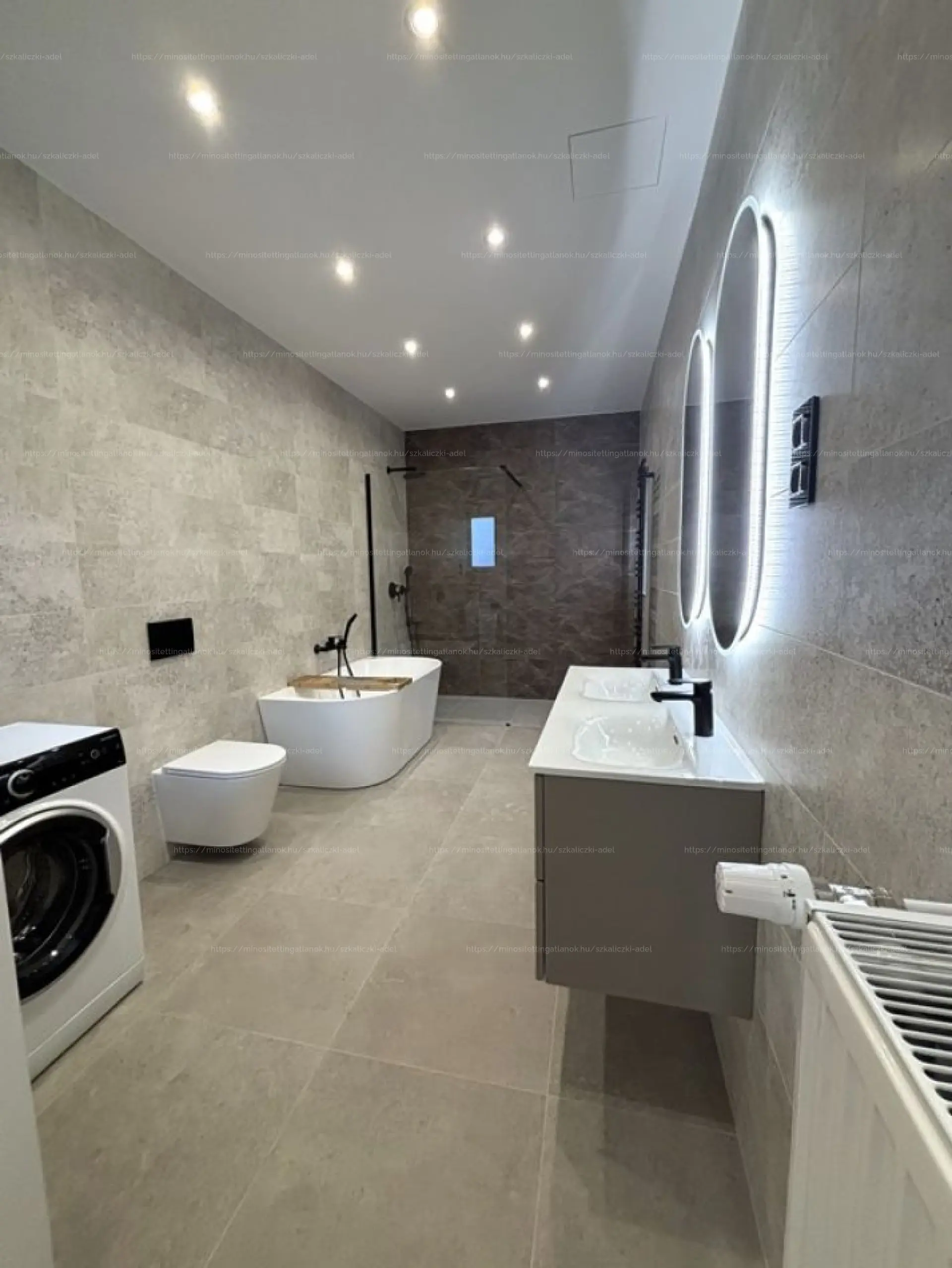 A lakásban nagyon elegáns és minőségi szanitereket, csaptelepeket, hideg burkolatokat, belső nyílászárókat, ezen felül valamennyi technikai berendezéssel felszerelt, korszerű konyhát építettek be. A lakás különlegessége, hogy a makulátlan parkettát az összes szobában felújították.
