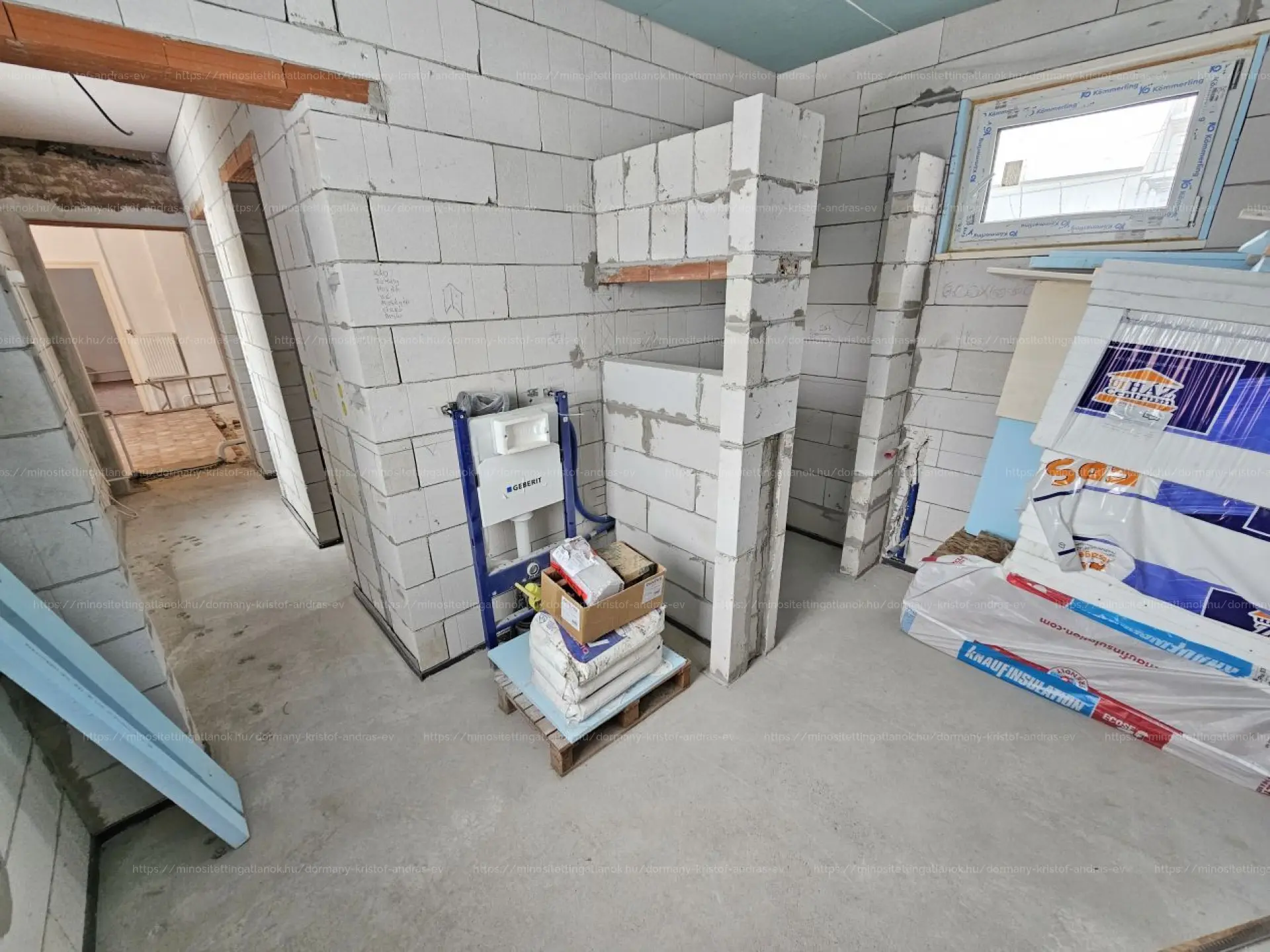 ✅hátul új aljzatbeton és elrendezés (tágas 10m2-es fürdő WC+ablakok)