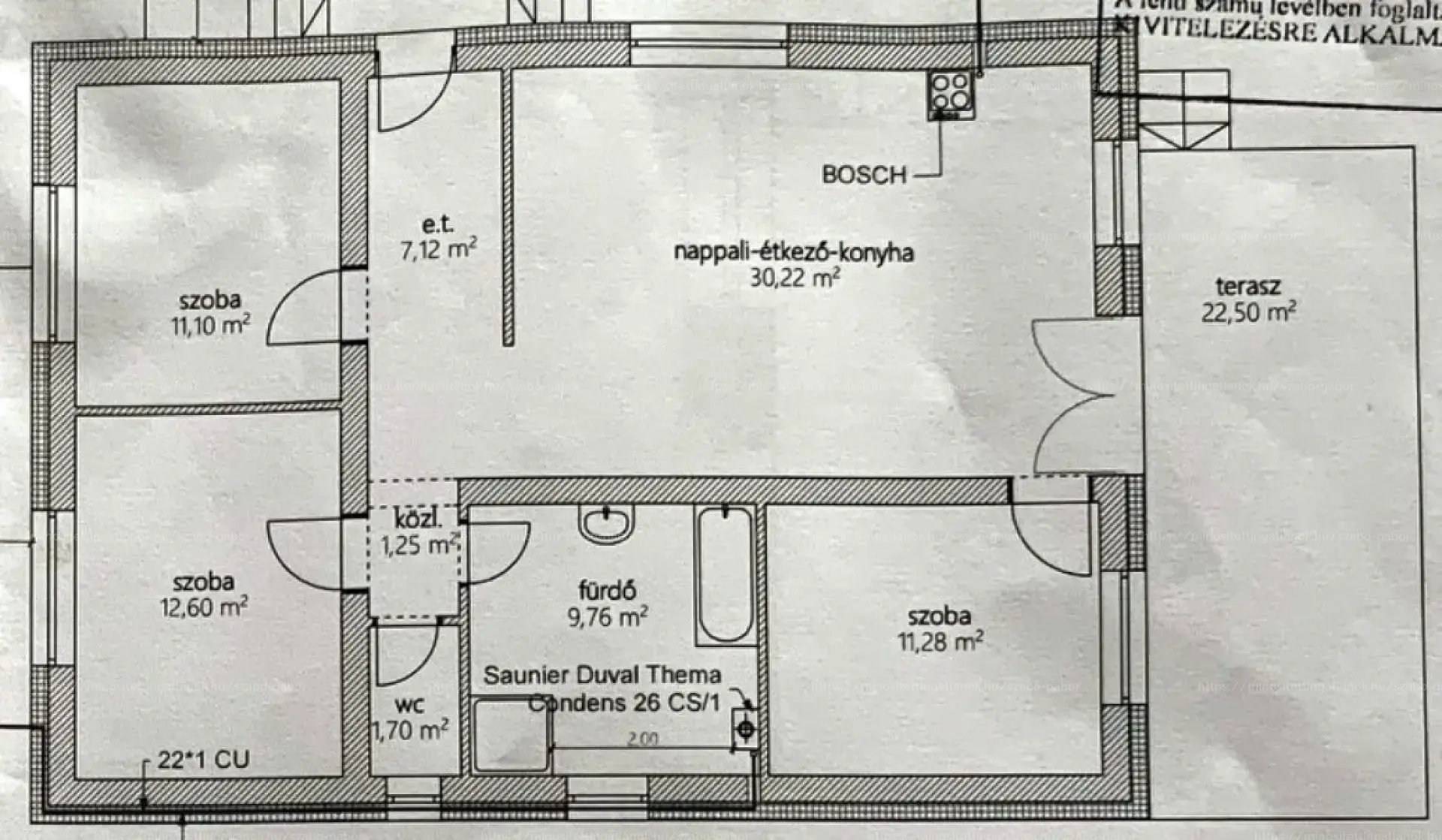22 m²es fedett 𝐭𝐞𝐫𝐚𝐬𝐳 és saját udvari 𝐠𝐚𝐫𝐚́́𝐳𝐬 teszi teljessé az ingatlant.