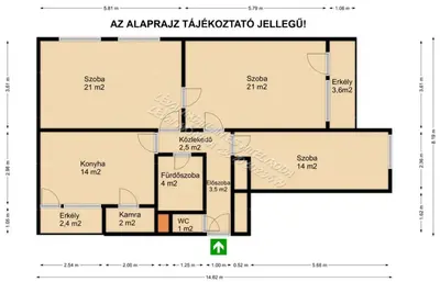 𝗔 𝗹𝗮𝗸𝗮́𝘀 𝗿𝗲́𝘀𝘇𝗲𝗶: előszoba, konyha, kamra, fürdőszoba, WC, 3 szoba + 2 erkély.