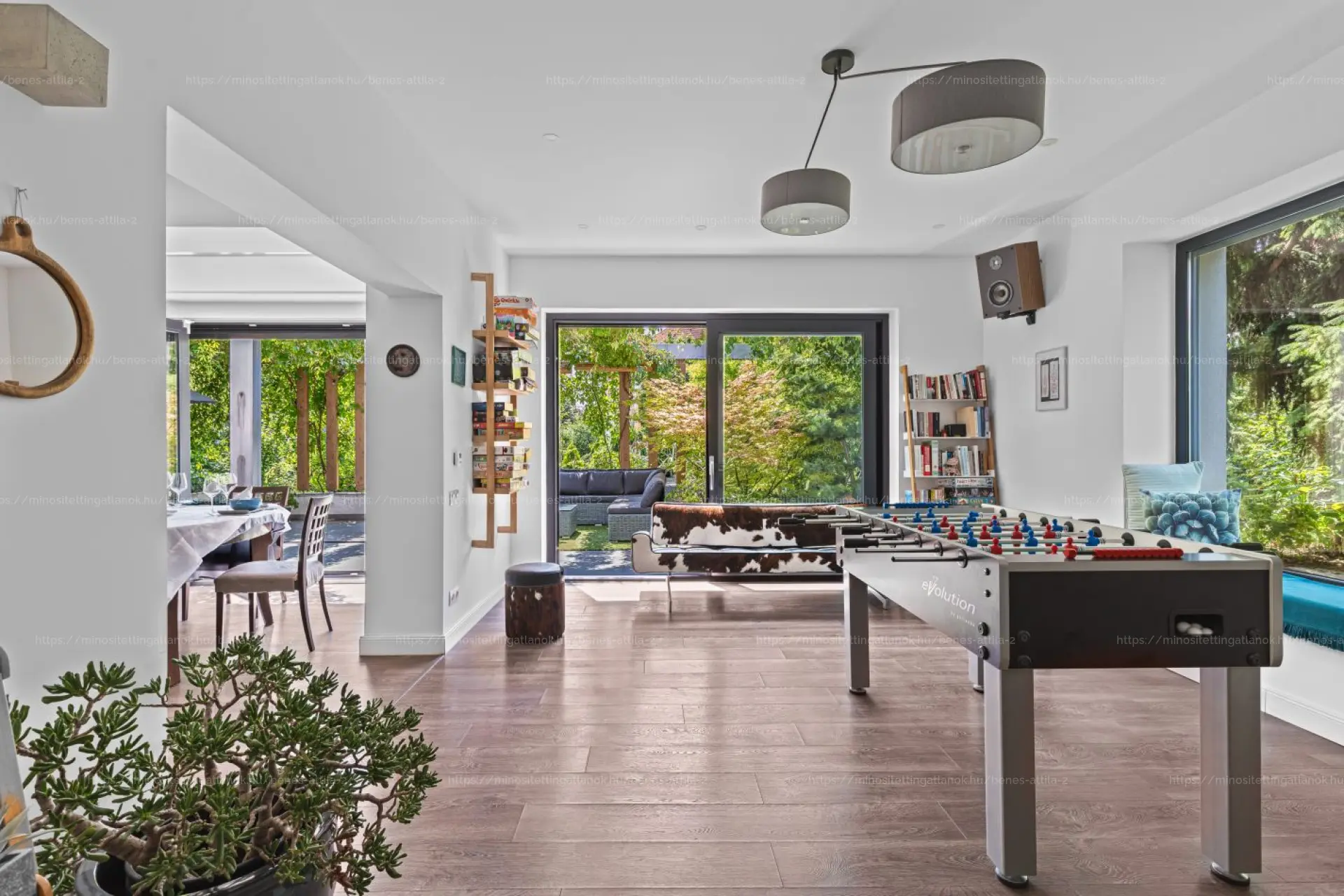 Az alagsori részben egy projektoros mozi szoba és egy boros pince került kialakításra, de ha valakinek szükséges, ez a rész könnyedén vendég lakrésszé alakítható.