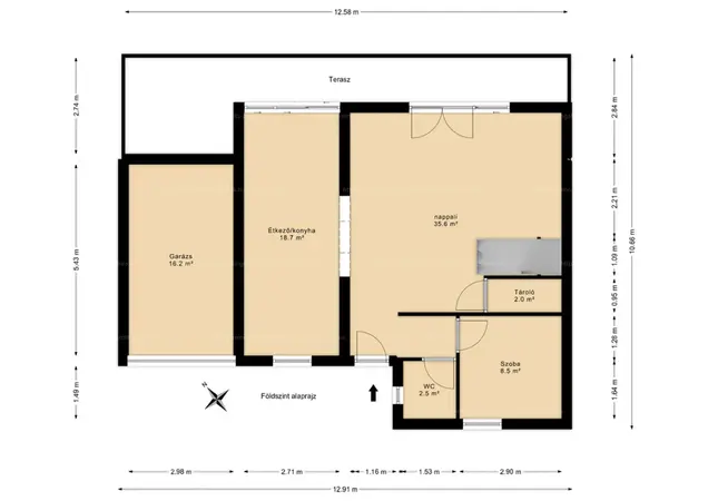 - a fürdőszoba és a WC egy helyiségben 4nm alapterületen található;