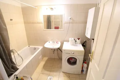 Polgári stílusú ház 1. emeletén (alatta felette is lakások vannak) helyezkedik el a tágas, 106 m2-es lakás. Korábban két lakás lett összevonva, így a visszaállítás is lehetséges, mivel két bejárata van, 2 vízóra és gázbekötés is van.