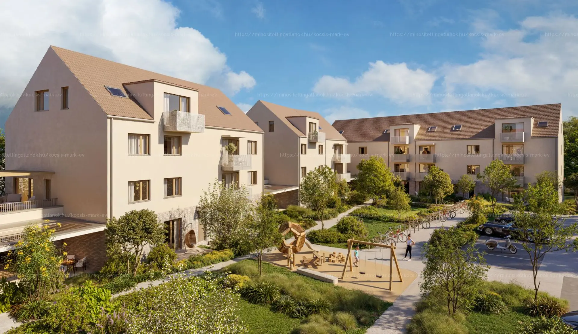 Az I. ütemben 46 és 87 m² közötti alapterületű, újépítésű lakások érhetők el, zöld környezetben, igény szerint garázzsal, parkolóval kiegészítve.