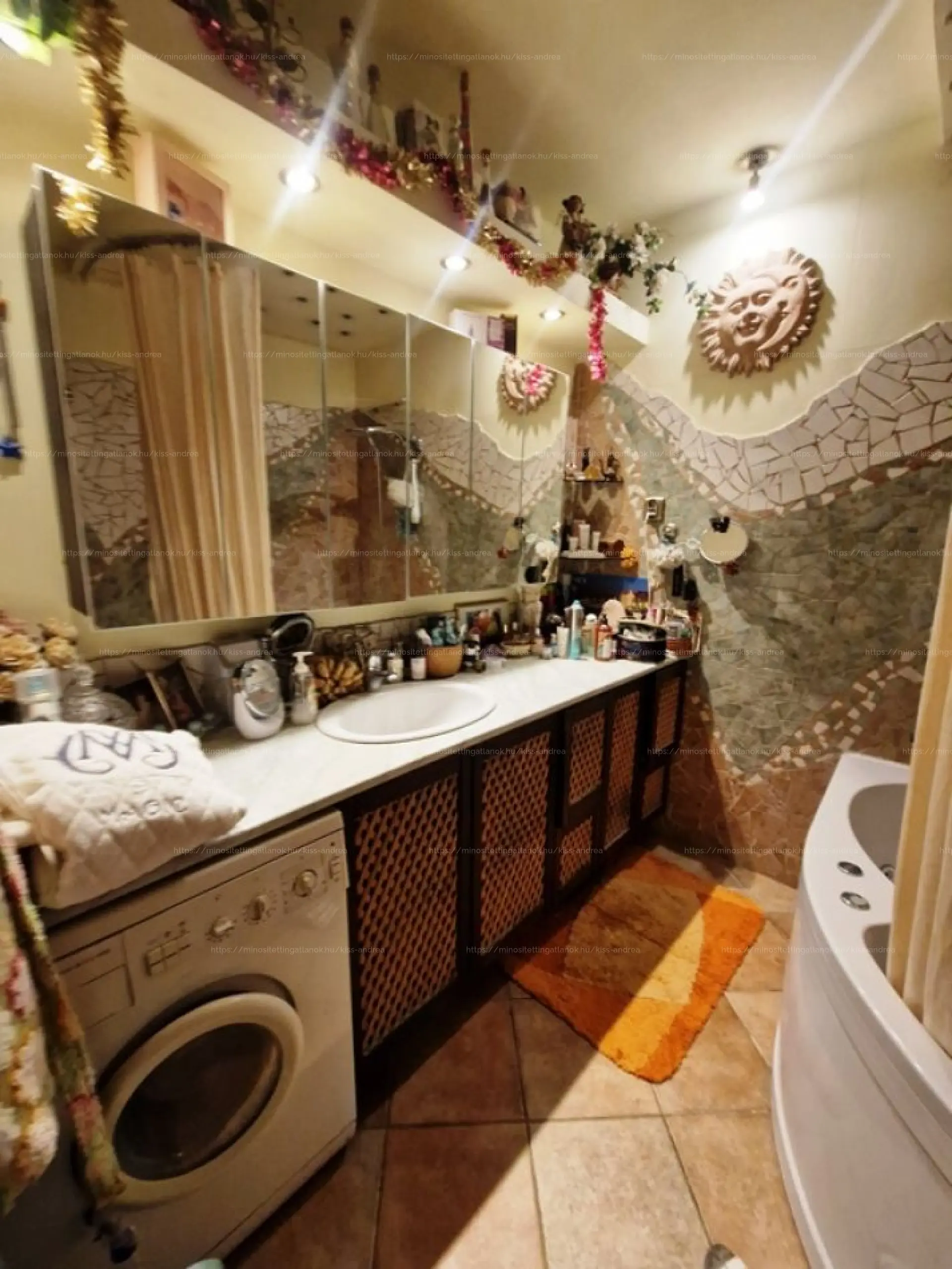 @ Fürdőszoba sarokkáddal, nagy pulttal, beépített mosógéppel