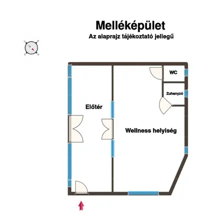 Itt finn szauna, szolárium, jakuzzi, fitneszgép, valamint zuhanyzó és külön WC található, mindez egy tágas, világos, 17 m²-es előtérrel kiegészítve.
