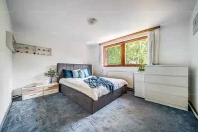 Az emeleten négy külön bejáratú szoba, egy fürdőszoba, egy gardrób és egy hangulatos erkély – bőséges helyet kínálva akár nagyobb család számára is.