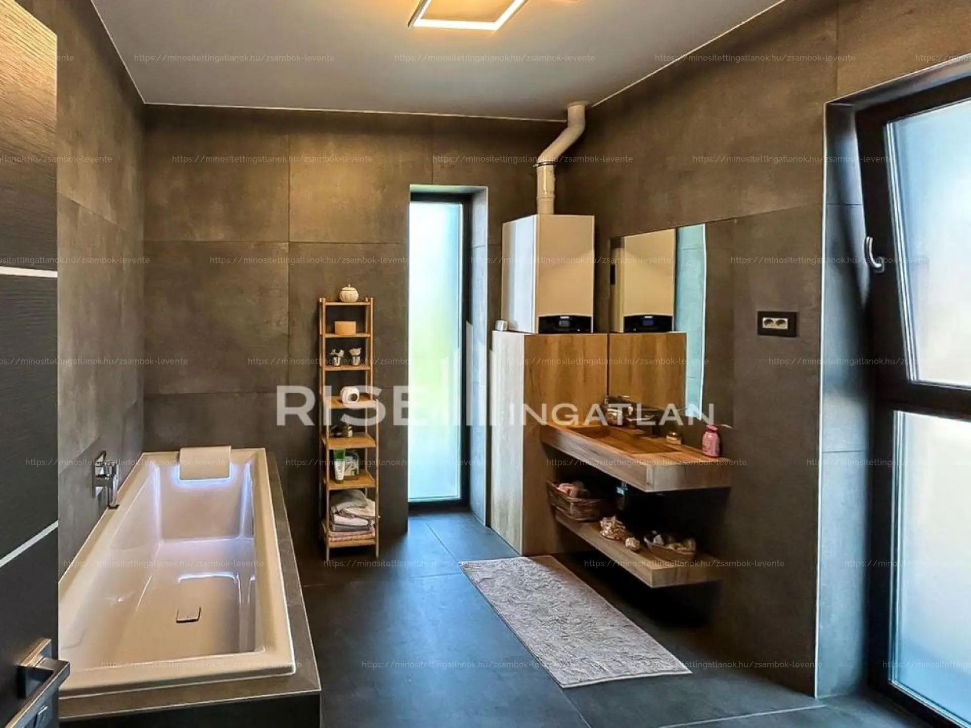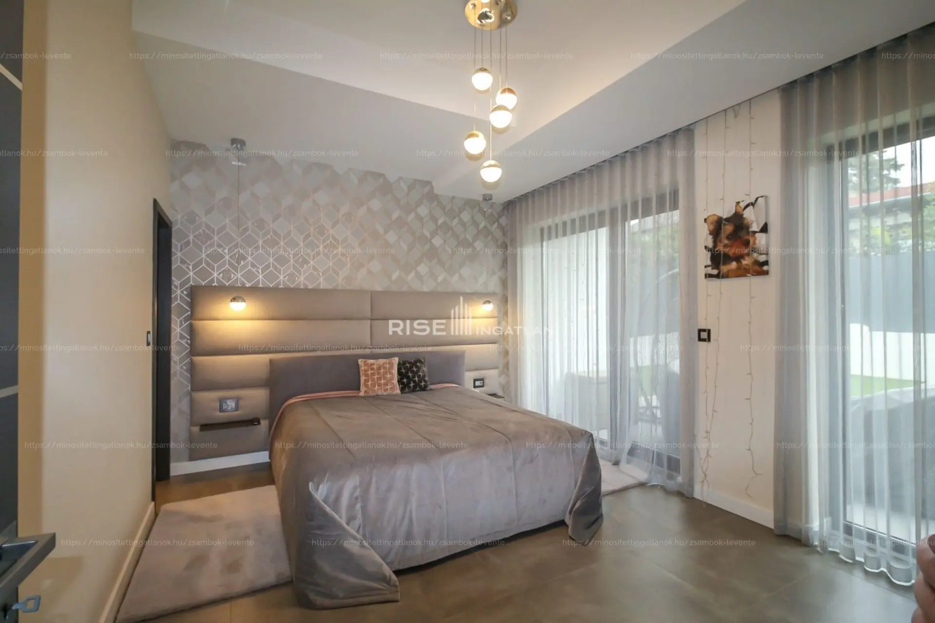 Nyílászárói háromrétegű üvegezésűek és elektromos redőnnyel ellátottak. A kert és garázsbejáró elektromosan mozgatható, a személybejáró kamerás kaputelefonnal rendezi A biztonság jegyében: a ház biztonsági ajtóval ellátva, riasztó rendszerrel, kamerarendszerrel minden tekintetben felszerelt.