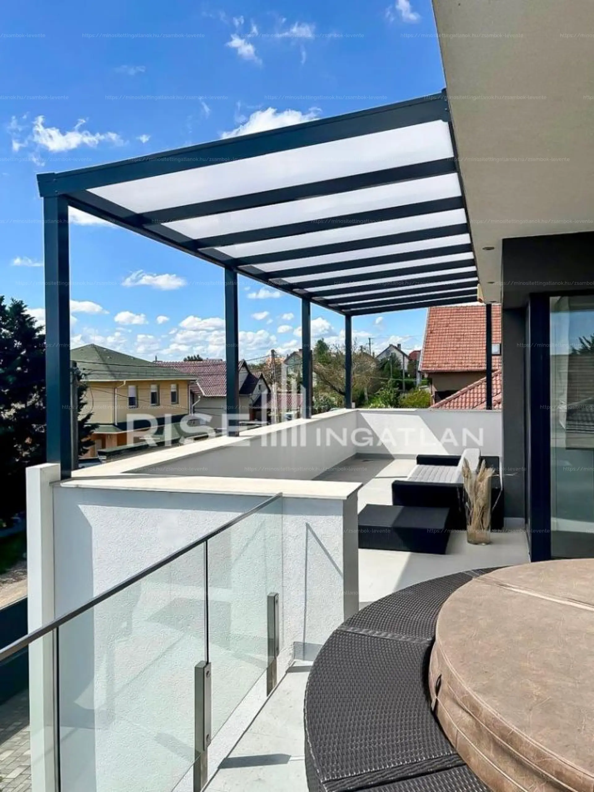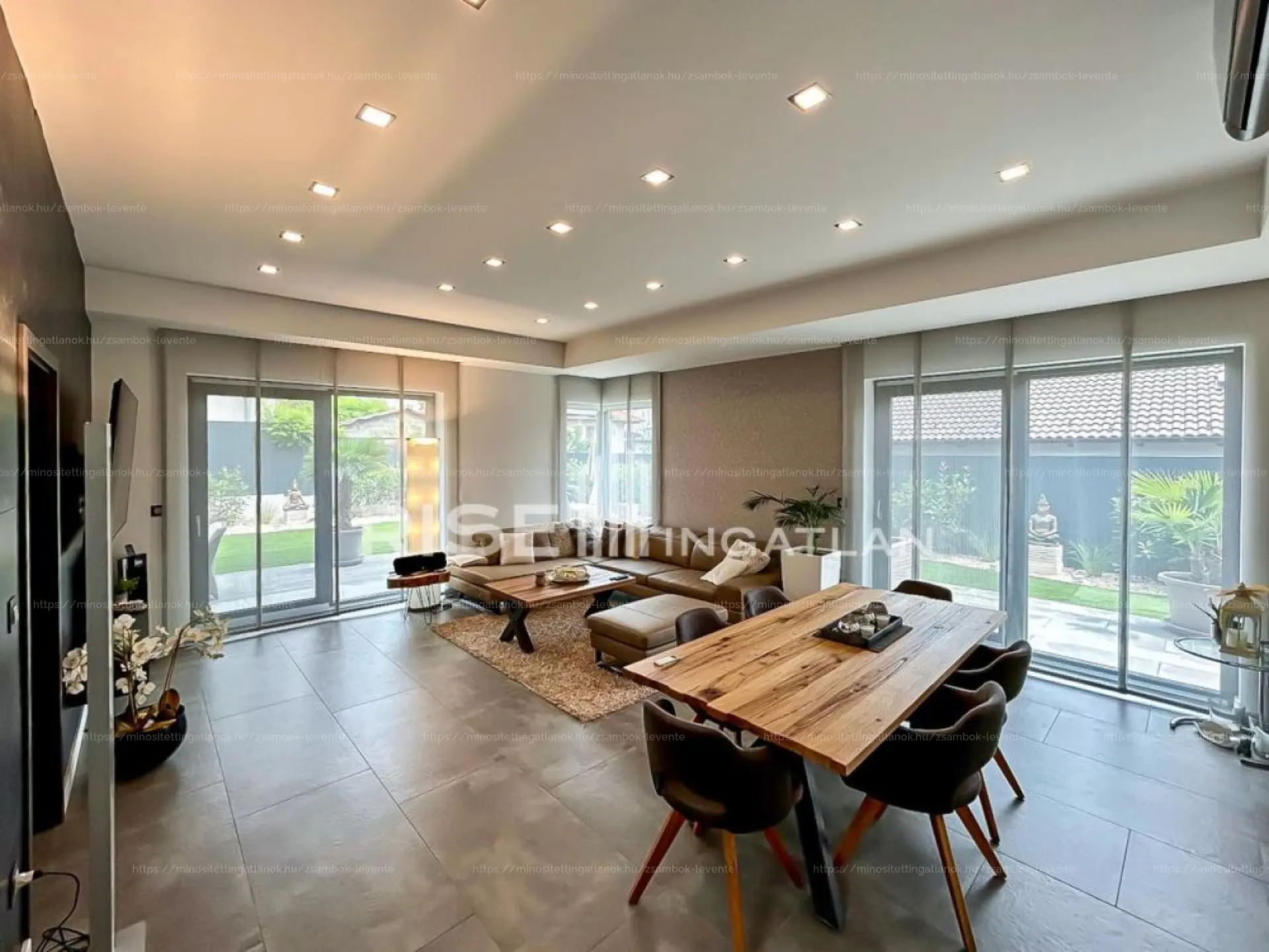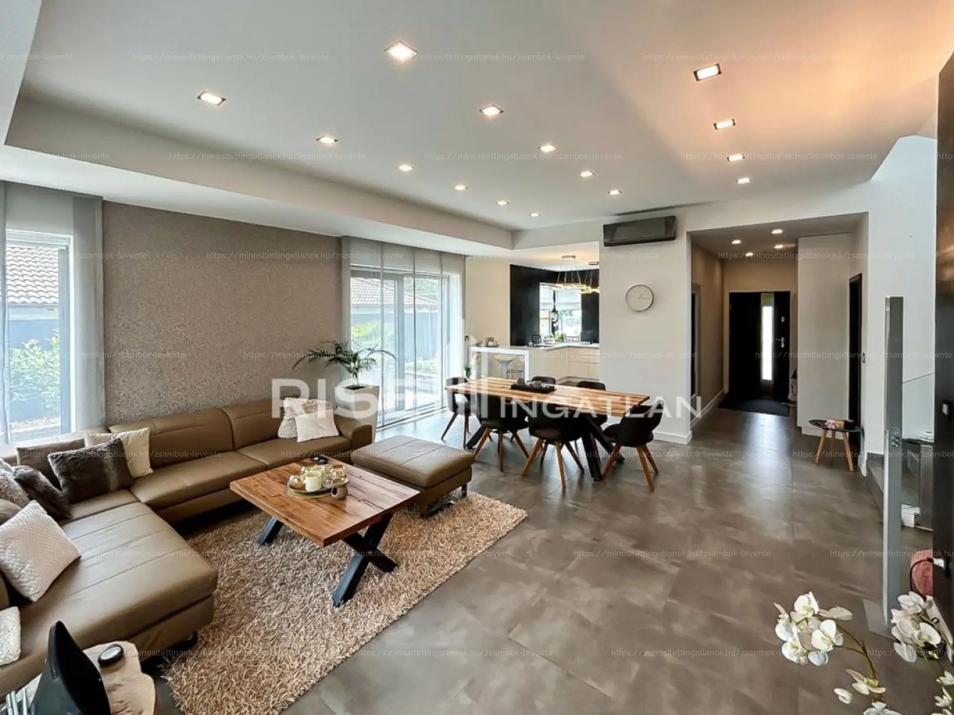 Az újszerű állapotban lévő ház nettó alapterülete 176 nm, melyből a lakótér 140 m2 és nappali+ három háló+ 2 fürdőszoba elrendezéssel. A házat körbe vesző teraszok, összességében 160 m2-el bővítik az életteret és nagyjából fedettek is.