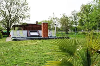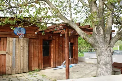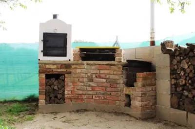 Az ingatlan egy gondosan kialakított, vöröskőből épült, száraz és JÓ KLÍMÁJÚ pincéből kialakított nyaraló: a 45,00 m2-es főépület nappalijának természetes megvilágítását tetőablak biztosítja. A telken továbbá egy 10,00 m2-es, önálló nyári konyha (más funkcióra is alkalmas) és egy 20,00 m2-es tároló található. A KIKAPCSOLÓDÁST hangulatos, diófa által árnyékolt terasz, bográcsozó és grillező, valamint JACUZZI és pálmafákkal szegélyezett napozó rész szolgálja.