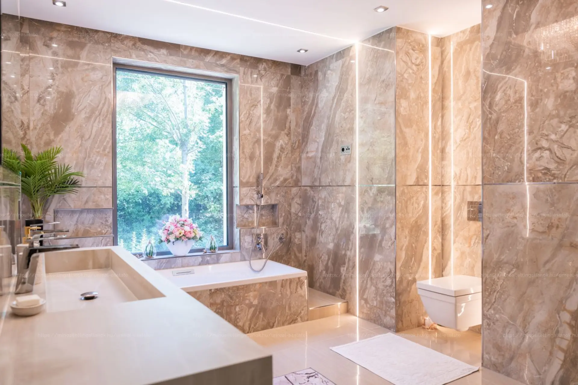 Az ingatlan ötvözi a modern építészeti megoldásokat a természetes anyagok időtálló eleganciájával.