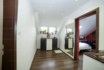 Az ingatlan négy- és félszobás, kétszintes, modern, tágas terekkel rendelkező, minden kényelmi igényt kielégítő, jól felszerelt. Az 1992-ben épült otthon falazata tégla, 15 cm-es szigeteléssel, új műanyag nyílászárókkal, melyek elektromos redőnnyel és szúnyoghálóval felszereltek, a tetőzete cserép.