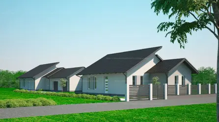 Az ingatlanok 650 m2-es és 450 m2-es TELKEN helyezkednek el, EGYSZINTES elrendezéssel (NETTÓ 105,11 m² és 98,52 m² lakóterület). Az AMERIKAI KONYHÁS NAPPALI mellett 3 különálló szoba található.
