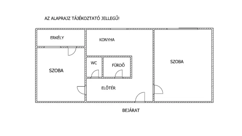4) elosztása: előtér – 2 szoba - konyha – fürdő – wc – erkély.