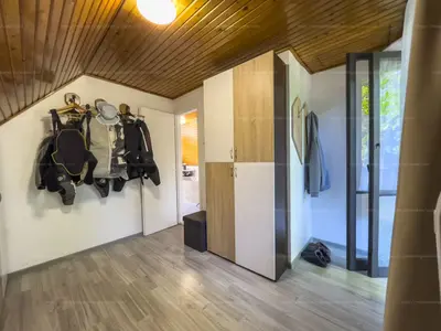A ház alatti szuterén alkalmas garázsnak, tárolónak, műhelynek is. Ezen kívül van egy fa tároló is.