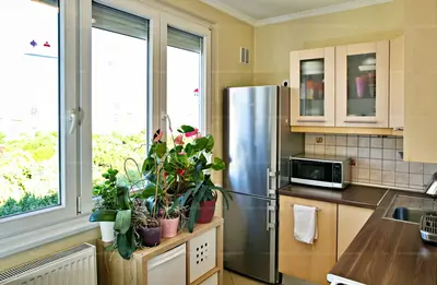 A nagy ablakos, külön konyha világos és jól szellőztethető, étkezős elrendezésének köszönhetően igazi családi tér.