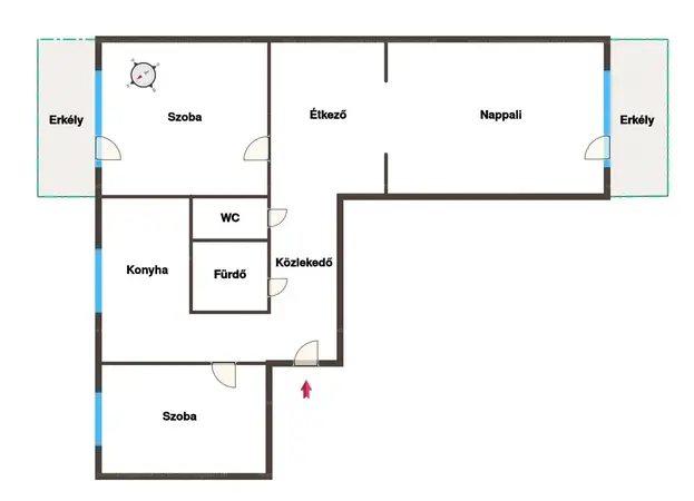 A két erkély külön irányba néz az egyik a parkra és a dombságra, a másik a Páskomliget utcára , így bármikor élvezhető a kilátás és a friss levegő.