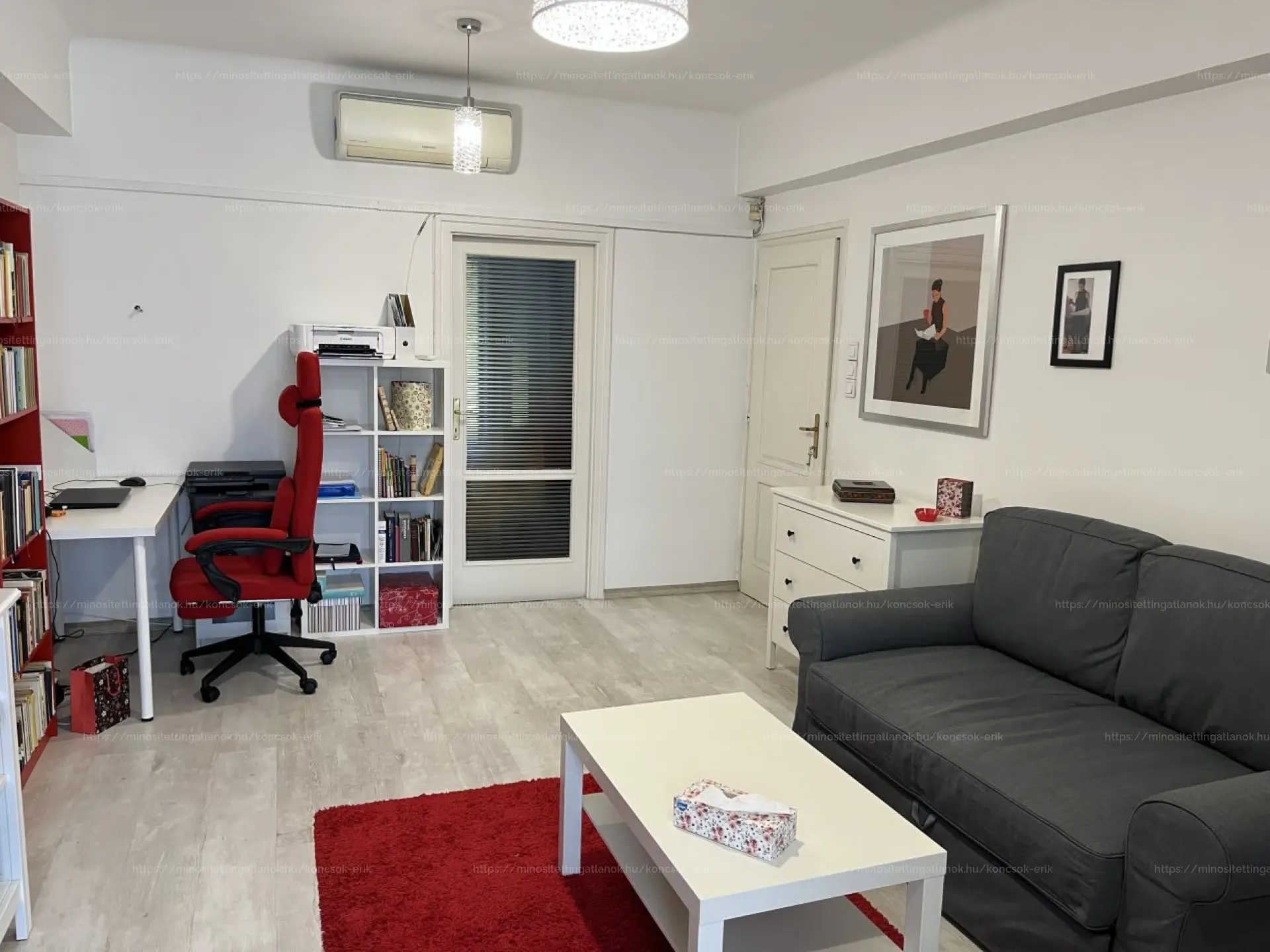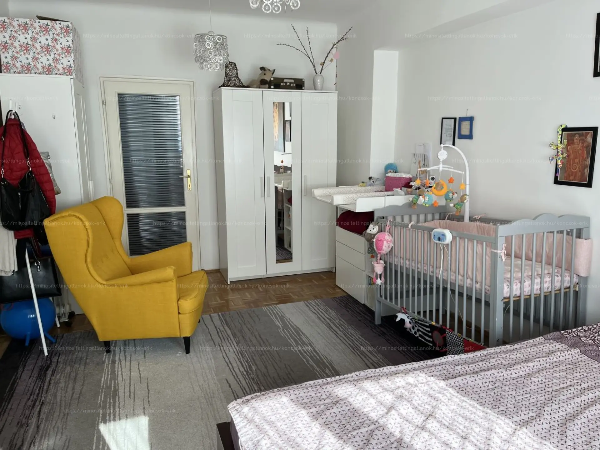 A lakás elosztása ideális: a két szoba egybe és külön is nyílik, az egyik az utcára, a másik egy hangulatos fitnessparkra néz. A nyílászárók műanyagok, szúnyoghálóval és redőnnyel felszerelve. A hűtésről nyáron légkondi gondoskodik.